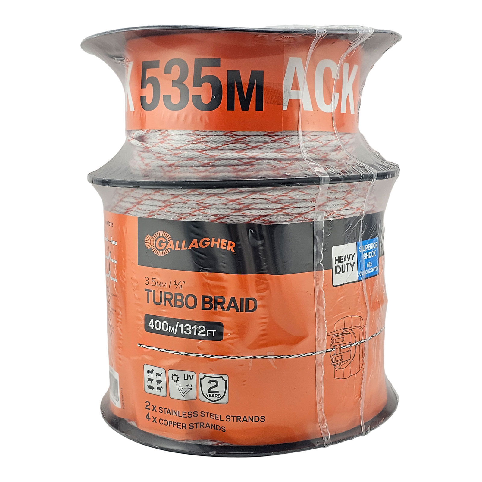 The Gallagher 3.5mm Turbo Braid is a premium, high-performance electric fencing solution designed for maximum conductivity, durability, and ease of use. Ideal for both portable and semi-permanent fencing, it delivers powerful and consistent shock performance to effectively control all types of livestock.
