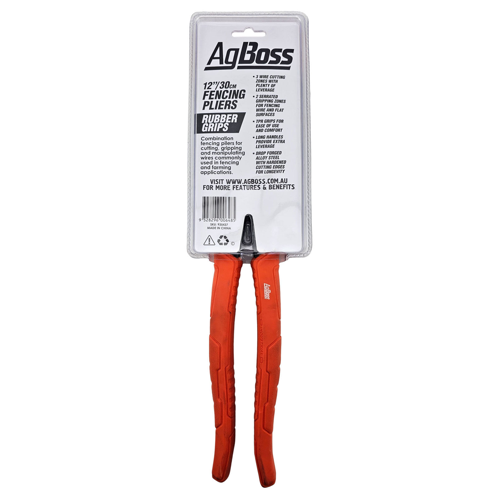 Introducing the AgBoss 30cm Fencing Pliers with Rubber Grips, a versatile and reliable tool for all your fencing needs, now available at The Grit.