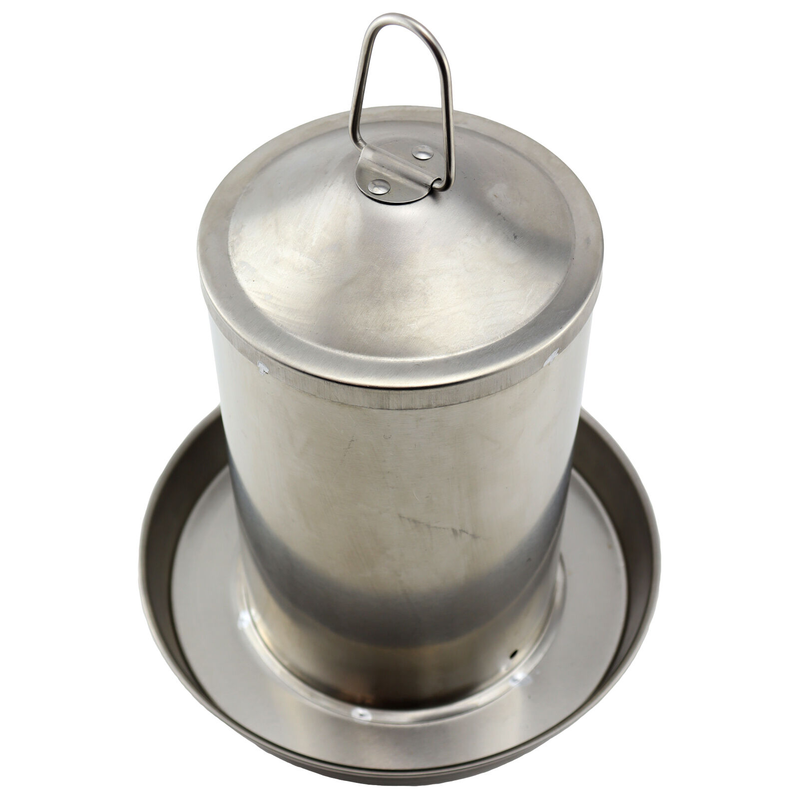 Robust, top-quality, stainless poultry drinker with hanging handle from AgBoss. Made of stainless steel for extra-long life and durability. Includes a handle for hanging.