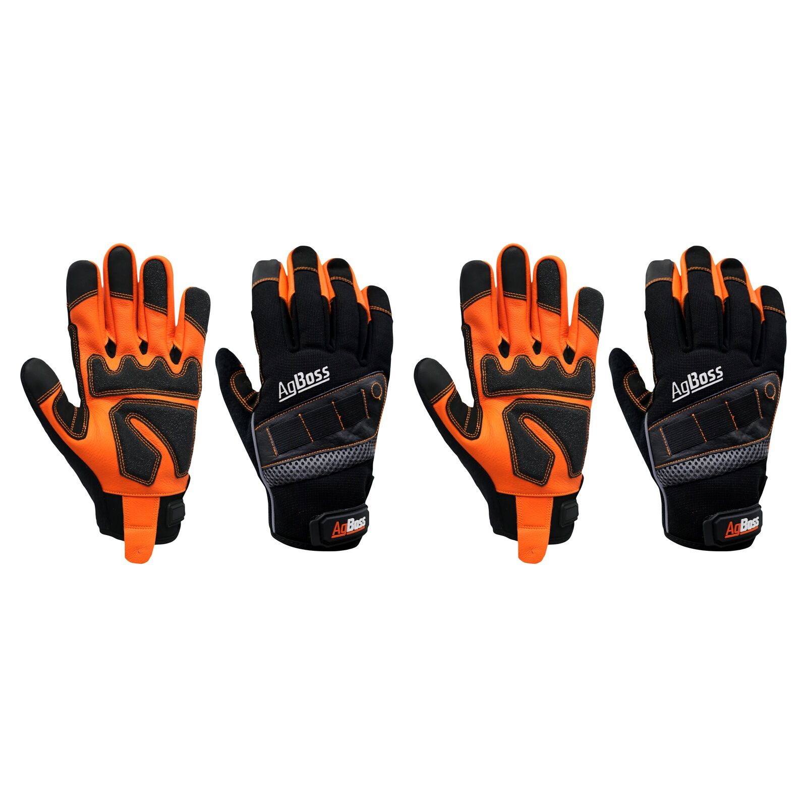 The AgBoss Premium Leather Work Glove is designed as the ultimate riggers' gloves. Made from full grain cowhide leather and features a toweling area on the thumb to easily wipe down the sweat while working. Another special feature is the elastic pockets for accessories on the to top of the hand. The glove is super flexible due to the stretch fabric it is made of and has PVC reinforced & EVA padding on the spots that matter in the palms. The perfect gloves for intense jobs out in the field.
