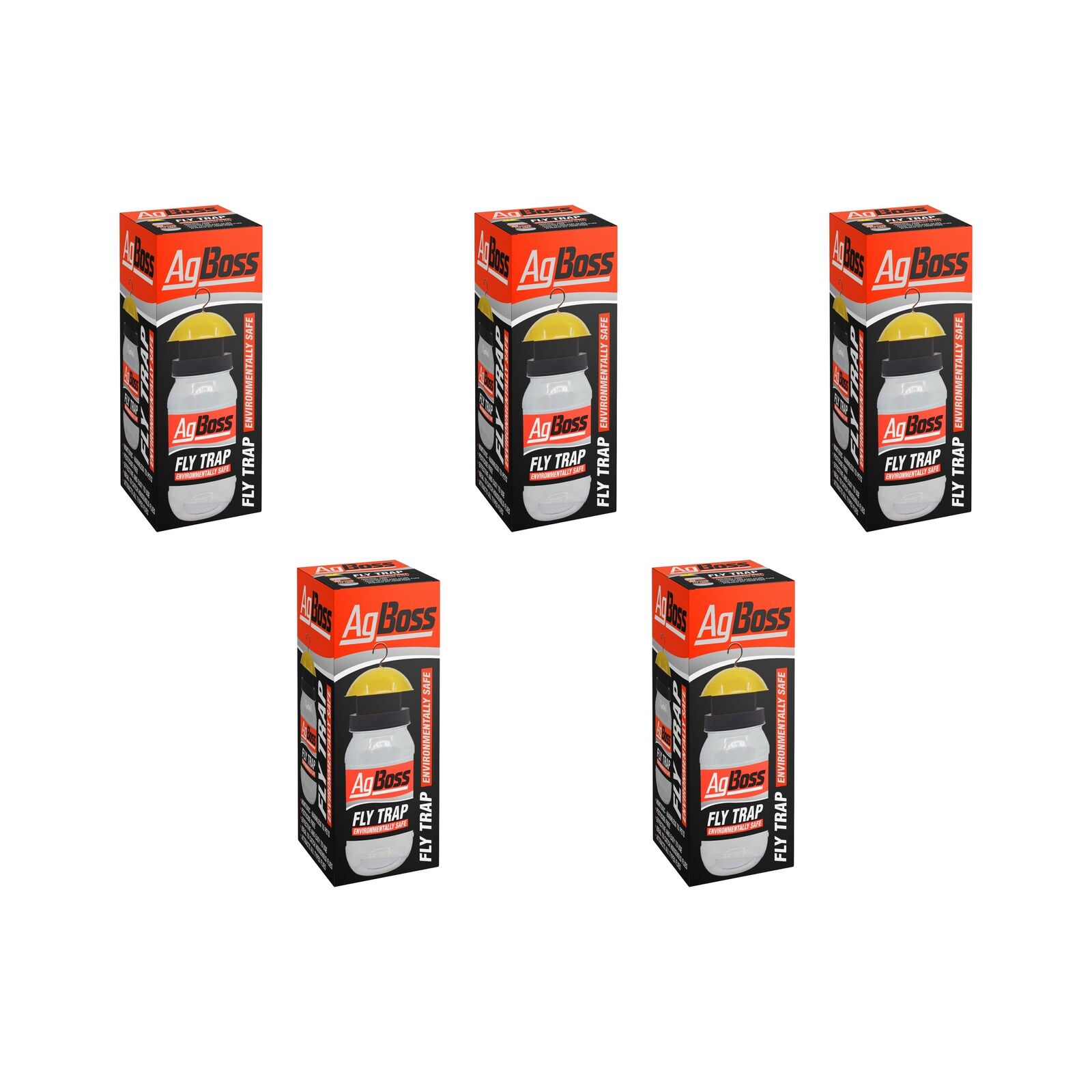 Durable plastic 1.3 litre traps hold up to 6,000. Ideal for use around livestock operations. Your reusable AgBoss Fly Trap won’t rust when exposed to the elements and ammonia. Hook makes trap easy to hang. Includes a non-toxic bait.