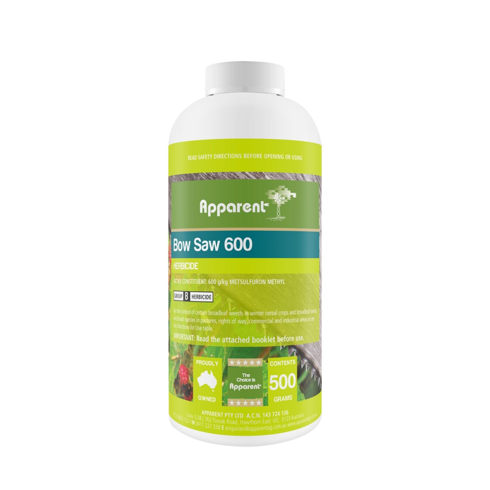Tackle troublesome weeds with Apparent Bow Saw 600, a powerful herbicide designed for effective broadleaf weed control across a range of applications. This 500 gram pack contains a potent formulation of Metsulfuron, ideal for managing unwanted growth in winter cereal crops, helping to protect your yields. Beyond agriculture, Bow Saw 600 is also highly effective in pastures, clearing broadleaf weeds and brush species to improve grazing land. Maintain clear access and a tidy appearance on rights of way, and keep commercial and industrial areas looking their best with targeted weed control. Remember to always read the Directions for Use table carefully before application – this is crucial for ensuring responsible and effective use, and to confirm suitability for your specific weed challenges. Bow Saw 600 offers a reliable solution for maintaining productive land and presenting a professional environment. We stock this product to help you manage your property effectively, offering a straightforward approach to weed control. Always follow label instructions and safety precautions when handling and applying herbicides.