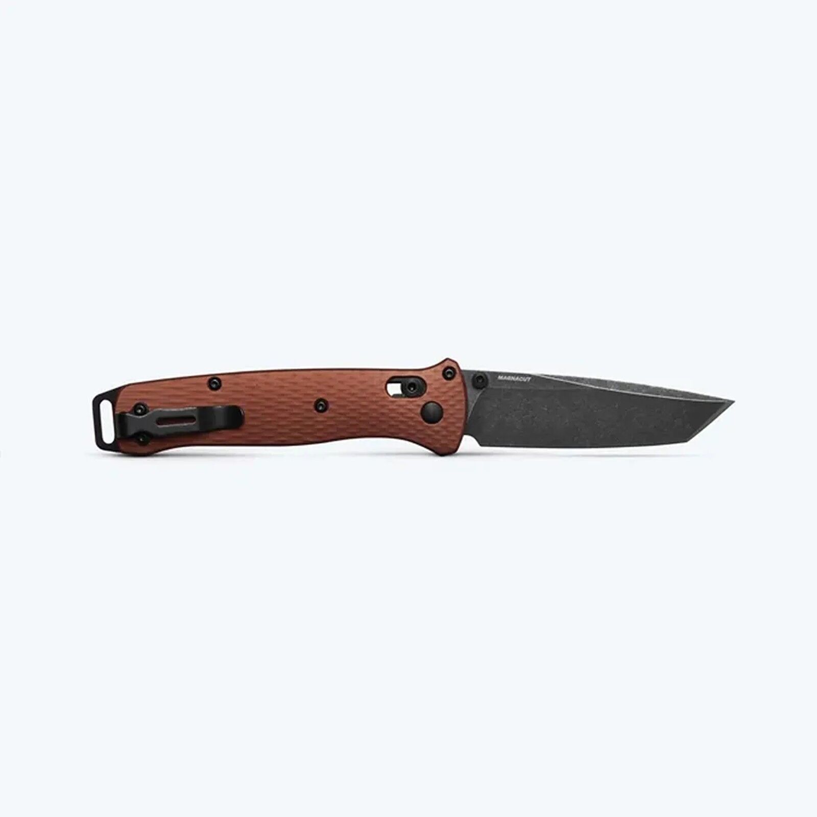 For adventurers and professionals alike, the Benchmade Bailout AXIS Lock Tanto Folding Knife in Burnt Copper and Black is a formidable instrument, building on a legacy renowned for its uncompromising strength and remarkably slim, ultralight profile. This isn't just a knife; it's a trusted companion, equally at home navigating rugged trails or tackling demanding tasks on the job. This latest iteration introduces the groundbreaking CPM-MagnaCut stainless super steel, offering unparalleled edge retention and significantly enhanced corrosion resistance, all presented in a tough DLC Battlewash finish that's built to endure. Complementing this advanced blade is the striking lightweight, diamond-textured Burnt Copper anodised aluminium handle, providing a secure and comfortable grip that stands out from the crowd. Paired with sleek black oxide hardware, the entire package exudes a rugged yet refined aesthetic. The renowned AXIS Lock mechanism ensures swift, ambidextrous deployment and rock-solid blade security, while the versatile tanto blade shape is engineered for both piercing precision and robust utility. This ruggedised, ultralight design is meticulously crafted to be ready for whatever your next adventure throws your way, embodying exceptional American manufacturing quality.