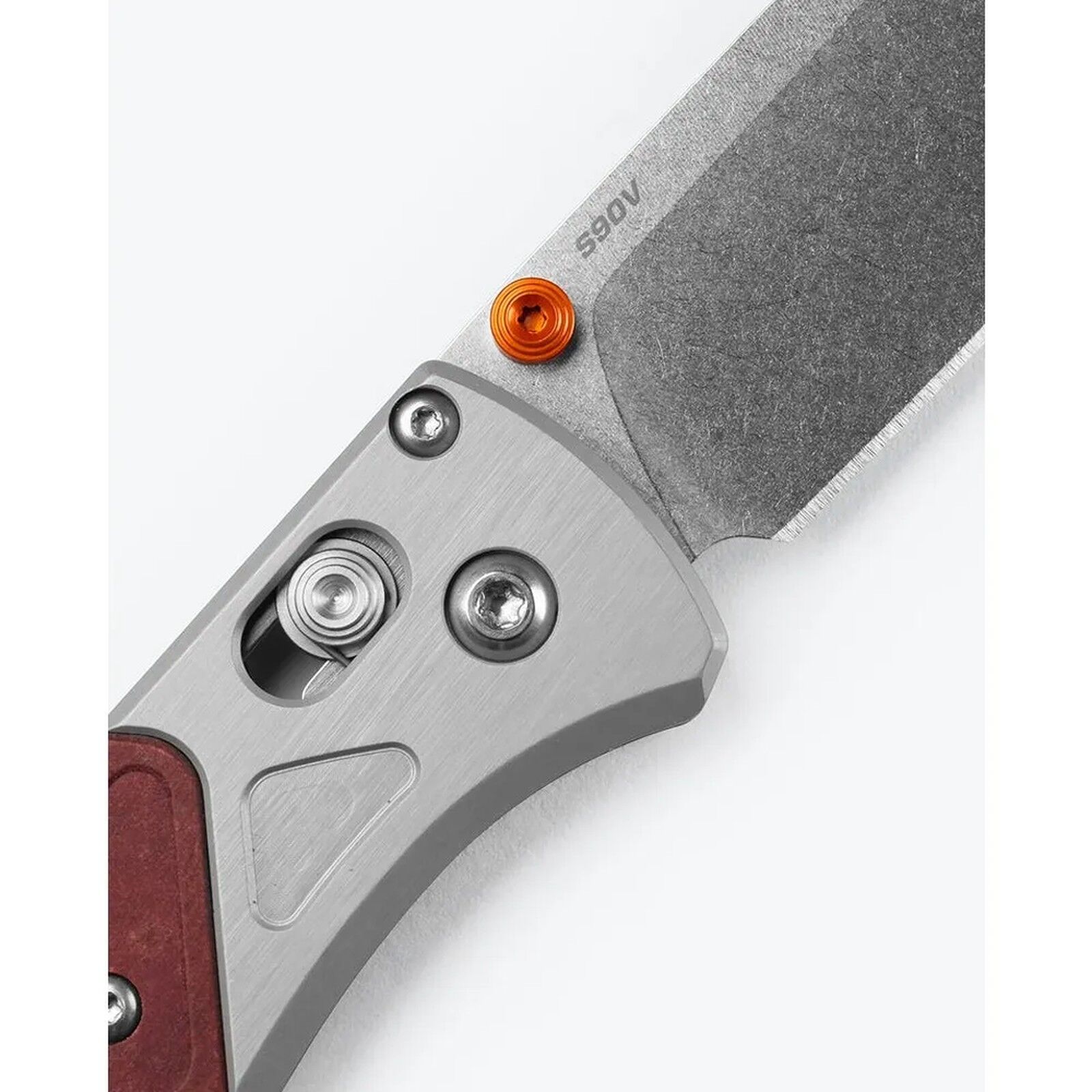 Discover the Benchmade Bugout AXIS Lock Folding Knife in its striking Red / Stonewash finish, a standout piece for anyone seeking a blend of rugged capability and sophisticated design. Benchmade has masterfully drawn inspiration from the natural world, crafting a knife that seamlessly integrates with your outdoor gear, backpacking essentials, and campsite accessories. This particular Bugout variant showcases handle scales that beautifully combine a robust grey anodised 6061-T6 aluminium bolster with a vibrant Redstone Richlite onlay, creating a tactile and visually appealing contrast. Subtle yet impactful pops of colour are added through the orange anodised thumb stud and backspacer, lending a distinctive aesthetic that truly catches the eye. At its core is a premium CPM-S90V stainless steel blade, meticulously stonewash polished for exceptional durability, corrosion resistance, and a refined look that’s ready for any challenge. Despite its premium construction, the Bugout maintains its renowned lightweight and compact feel, making it an effortless addition to your pocket or pack. Its legendary AXIS Lock mechanism offers reliable, ambidextrous operation, ensuring secure deployment and closure with remarkable ease. Whether you’re navigating a winding mountain trail, setting up camp, or tackling daily tasks around the urban landscape, this Benchmade Bugout is engineered to be your ideal companion, blending unwavering performance with undeniable style.