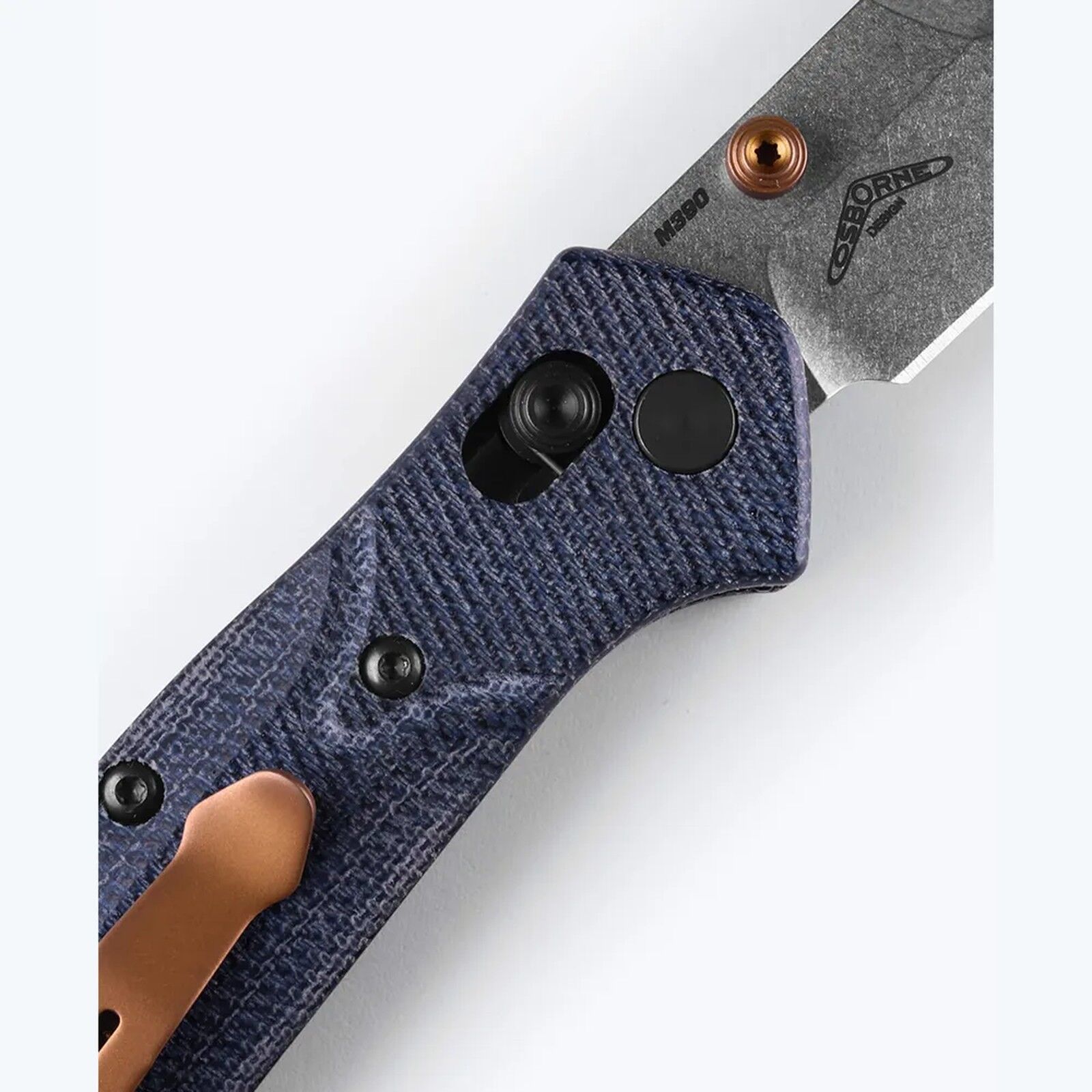 Just like your favourite pair of blue jeans – rugged, reliable, and effortlessly cool – the Benchmade Mini Osborne AXIS Lock Folding Knife in Blue and Satin is built for those who aren't afraid to get their hands dirty or their boots dusty. This compact evolution of an iconic folder, which began its life as a versatile ranch knife, seamlessly transitions into your ultimate everyday carry companion. It features a premium M390 steel reverse tanto blade, known for its exceptional edge retention and corrosion resistance, finished with a sleek satin sheen that catches the light just right. The distinctive textured blue denim micarta handle scales offer a secure, comfortable grip and a unique aesthetic, perfectly complemented by subtle dark copper PVD accents that add a touch of sophisticated grit. As a perfectly proportioned, scaled-down version of the acclaimed full-size Osborne, it offers all the legendary performance in a more pocket-friendly package. Equipped with Benchmade's renowned AXIS Lock mechanism, it ensures ambidextrous, rock-solid blade deployment and security, making it a dependable tool for any task. Whether you're tackling daily chores, heading out on an adventure, or simply appreciating fine craftsmanship, this knife is more than just a tool; it's a statement of durability and style, ready for whatever life throws your way.