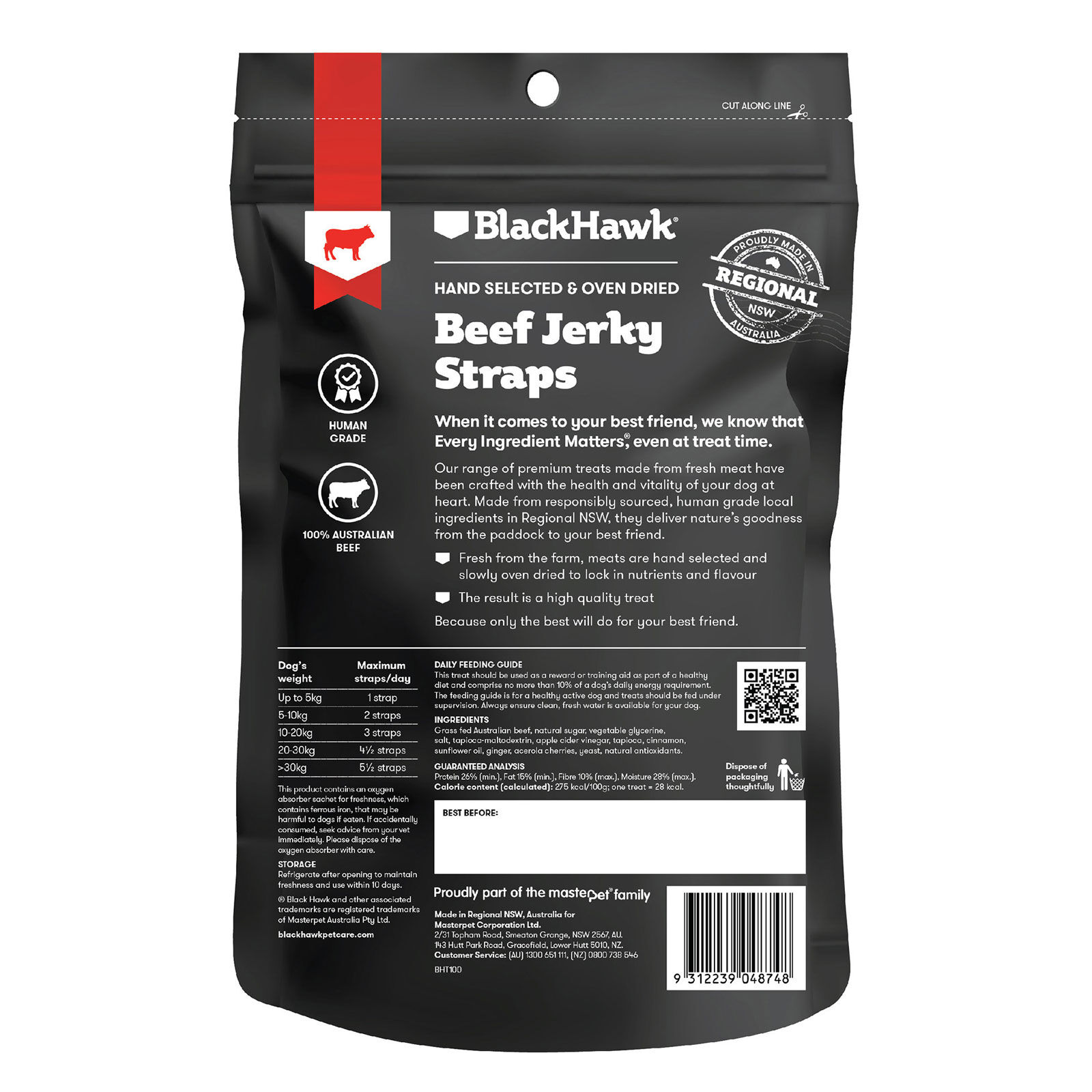 Spoil your best mate with a truly premium, Aussie-made snack crafted with their health and vitality in mind. Here at The Grit, we believe in treats that are as wholesome as they are delicious, and Black Hawk Beef Jerky Straps are a perfect example. Made in regional Australia from 100% responsibly sourced, human-grade Australian beef, these jerky straps bring nature's goodness straight from the paddock to your companion. These aren't just any treats; they are hand-selected prime cuts, carefully sliced and then slowly oven-dried. This gentle process locks in the rich, meaty flavour and essential nutrients, ensuring your dog gets a mouthful of pure quality with every bite. The recipe is completely grain-free, focusing instead on a thoughtful blend of grass-fed beef, a touch of natural sugar for taste, and wholesome ingredients like apple cider vinegar, cinnamon, and ginger, all preserved with natural antioxidants. Each 100g pack contains satisfyingly chewy straps, approximately 80mm long, making them an ideal size for medium to large dogs over twelve months old. Because these are crafted like a premium human product, remember to pop them in the fridge after opening and use them within ten days to maintain their exceptional freshness and taste. It’s a treat you can feel genuinely good about giving.