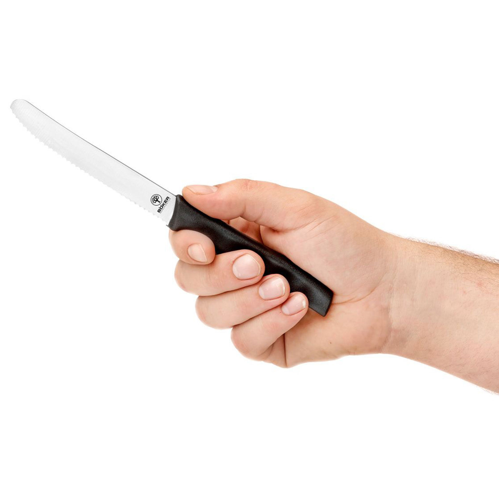 This versatile steak and sandwich knife has a high quality stainless steel blade with ultra sharp sharp serrations for effortless cutting. The ergonomic synthetic handle offers a secure grip.