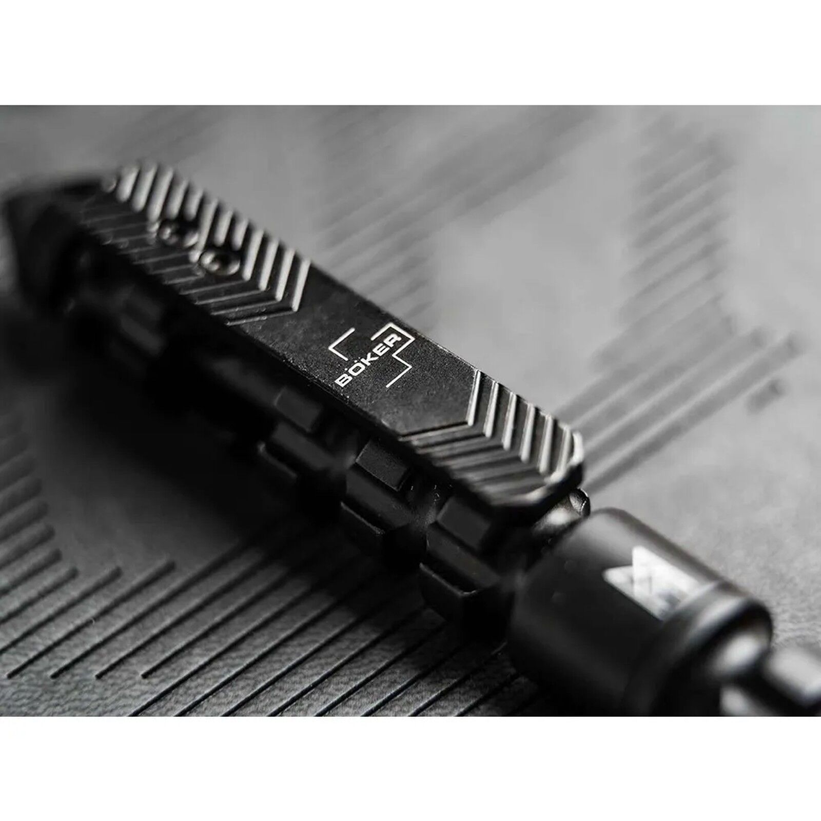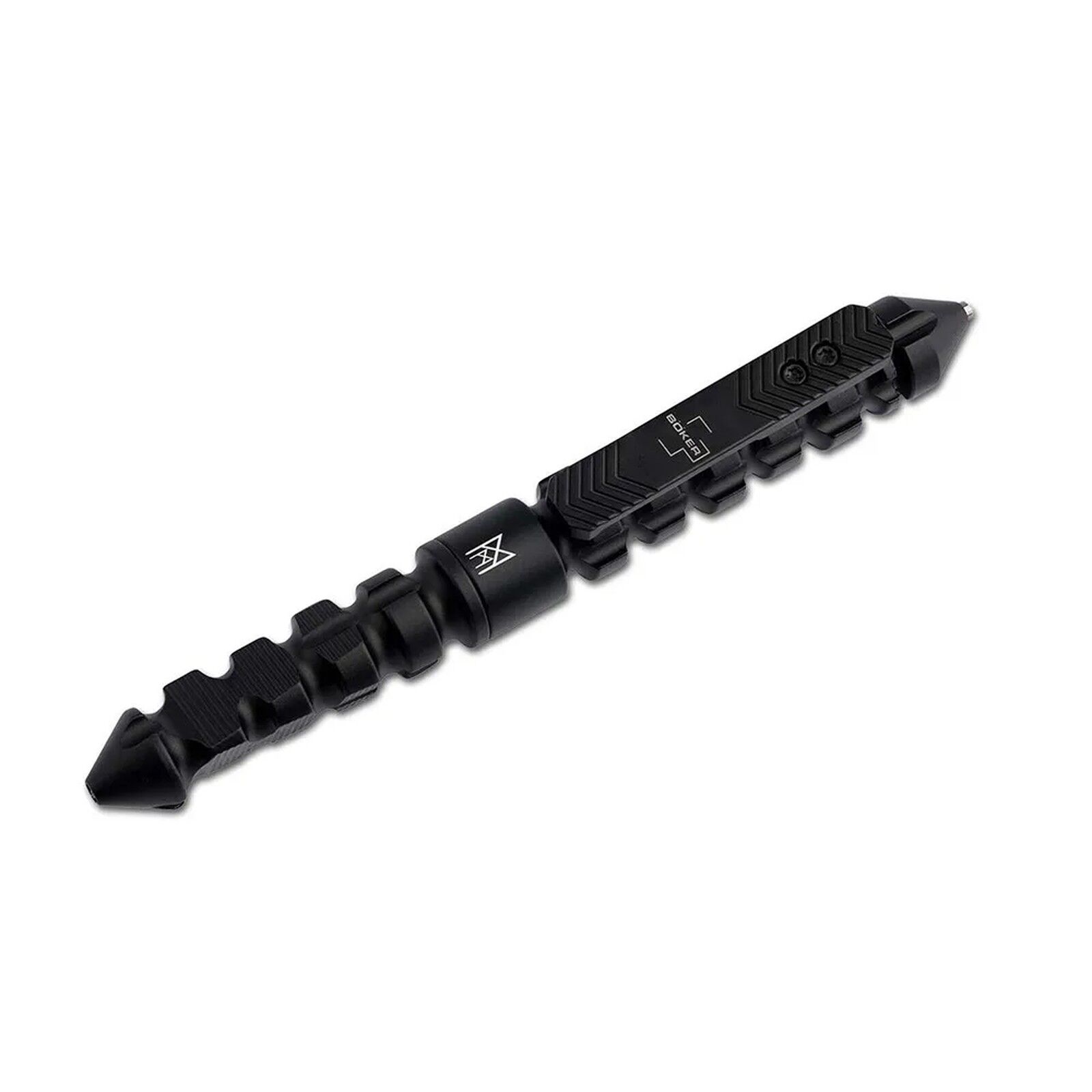 The Boker Plus Fat Box Tactical Pen in black is a seriously robust writing instrument, born from the distinctive design philosophy of Dirk Hofmeister from Midgards Messer. This isn’t just a pen; it’s a solid piece of kit, precision-machined from 6061 aluminium for incredible strength and durability. The Fat Box feels substantial in the hand, thanks to deep grooves and flattened, ribbed sections that provide a secure and comfortable grip – even in challenging conditions. A cleverly designed, heavy-duty clip, featuring the Midgard logo, reliably advances the large capacity refills (compatible with ISO 12757-2 standard). Beyond its writing function, this pen features a hardened steel glass breaker integrated into the end of the handle, adding a layer of preparedness to your everyday carry. Measuring a comfortable length, the Boker Plus Fat Box is a dependable tool for those who appreciate quality and a touch of understated tactical style.