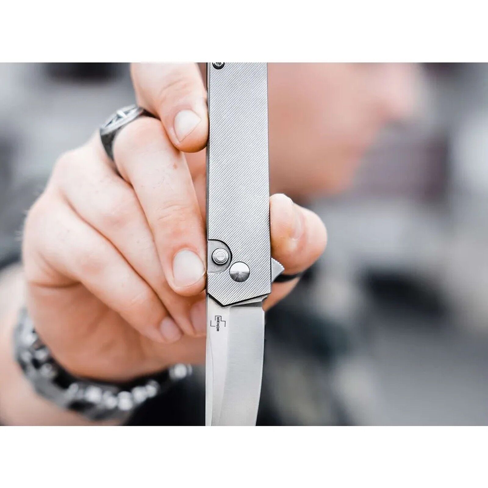 The Boker Plus Kwaiken Button Lock folding knife is a modern classic, drawing inspiration from traditional Japanese designs while delivering exceptional performance. Created by Lucas Burnley, this knife boasts a sleek profile and comfortably fits in the pocket despite housing a 89mm blade. The Kwaiken’s standout feature is its incredibly smooth action – the CPM-S-35VN steel blade, utilising ball-bearing technology, flicks open effortlessly with a flipper and locks securely with a simple press of the front button. Crafted with diagonally textured titanium handle scales, this knife not only feels fantastic in the hand but offers a distinctive, premium aesthetic. It’s a versatile tool, equally at home as an everyday carry or a more demanding task knife. Supplied with a tip-up right-hand clip, a lanyard hole, and a quality pouch for safe keeping, the Kwaiken is a refined and reliable addition to any collection.