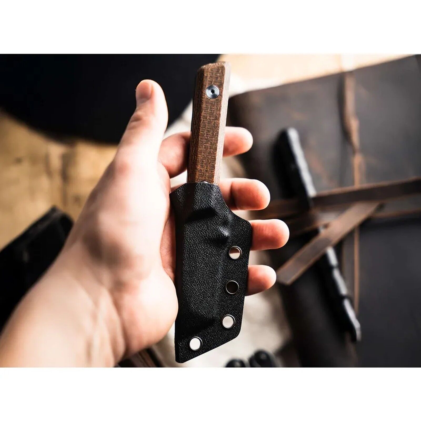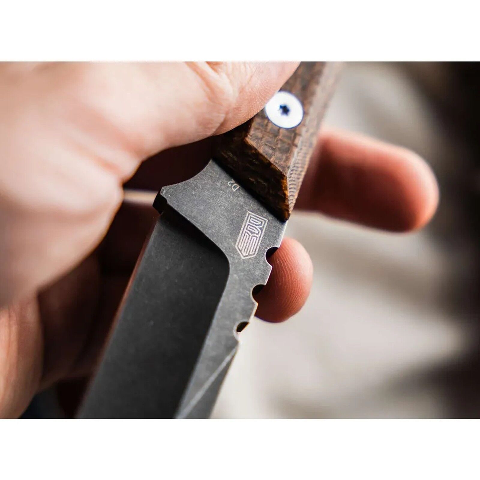 The Boker Plus Thicker Clipper is a seriously capable fixed blade knife, designed by Brent Michael Smith with a focus on robust performance. Smith’s background in engineering shines through in this thoughtfully balanced tool, built to handle demanding tasks whether you’re around the campsite or tackling everyday jobs. Featuring a 160mm blade crafted from durable D2 steel with a practical Tanto profile and a stylish black stonewash finish, this knife isn’t about finesse – it’s about getting things done. The substantial 5.6mm blade thickness gives it real strength for tougher work. Contoured handle scales made from rich brown Micarta, paired with solid bolsters, provide a secure and comfortable grip, while pronounced jimping offers enhanced control during use. It’s a full tang construction for added reliability, and comes complete with a custom-moulded Kydex sheath for safe and convenient carry. A solid, dependable knife that proves sometimes, thicker really *is* better.