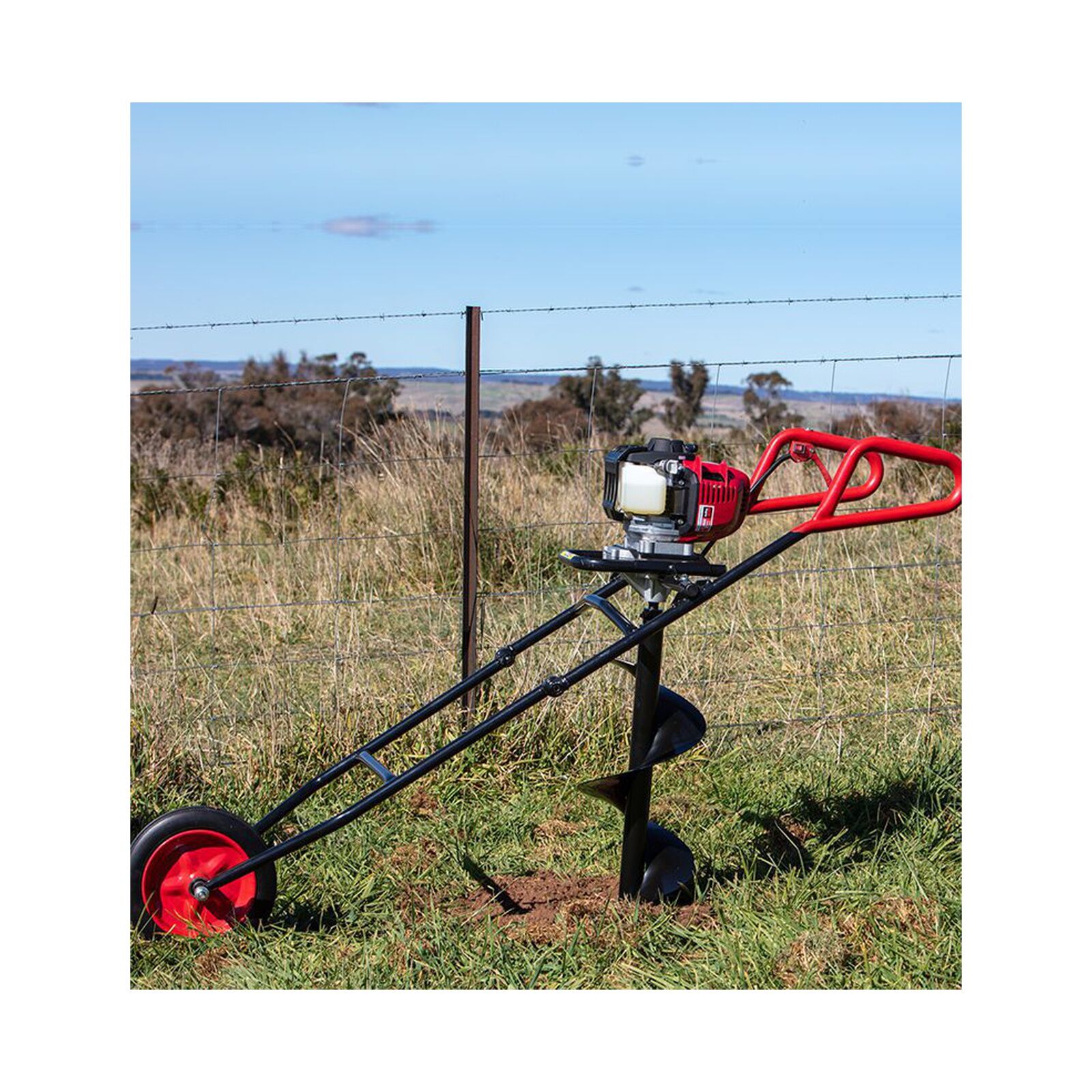 Unleash serious digging power with The Grit's Bullmax 1 Person 4-Stroke Honda GX50 Wheeled Earth Auger, engineered for both seasoned professionals and dedicated home users across Australia. This formidable machine is driven by the renowned Honda GX50 4-stroke engine, delivering consistent power through a Bullmax commercial-quality gearbox, ensuring reliable performance every time. Designed with operator comfort and safety in mind, its ergonomic frame features smooth, rounded surfaces without any protruding parts, while the intuitive throttle trigger instantly disengages upon release and an accessible ignition kill switch provides complete control. Moving between drilling sites is effortless thanks to its robust barrow frame with a wheel, and for convenient storage, the entire unit is thoughtfully foldable. This complete package arrives ready to work, including a durable 250mm x 800mm auger drill featuring a heavy-duty gearbox, a precision drill tip for starting pilot holes, and innovative replaceable tungsten tip hardened blades – meaning when wear occurs, you simply replace the blades, not the entire auger drill, saving you time and money. Rest assured of its quality, as this Bullmax auger has been rigorously tested and certified by Honda Australia, backed by an impressive 3-year Honda Australia engine warranty, alongside a 12-month Bullmax warranty covering the frame and drivetrain. Assembled right here in Australia, this powerhouse is built to tackle tough ground with ease, offering unparalleled convenience and lasting durability for all your earth-drilling needs.