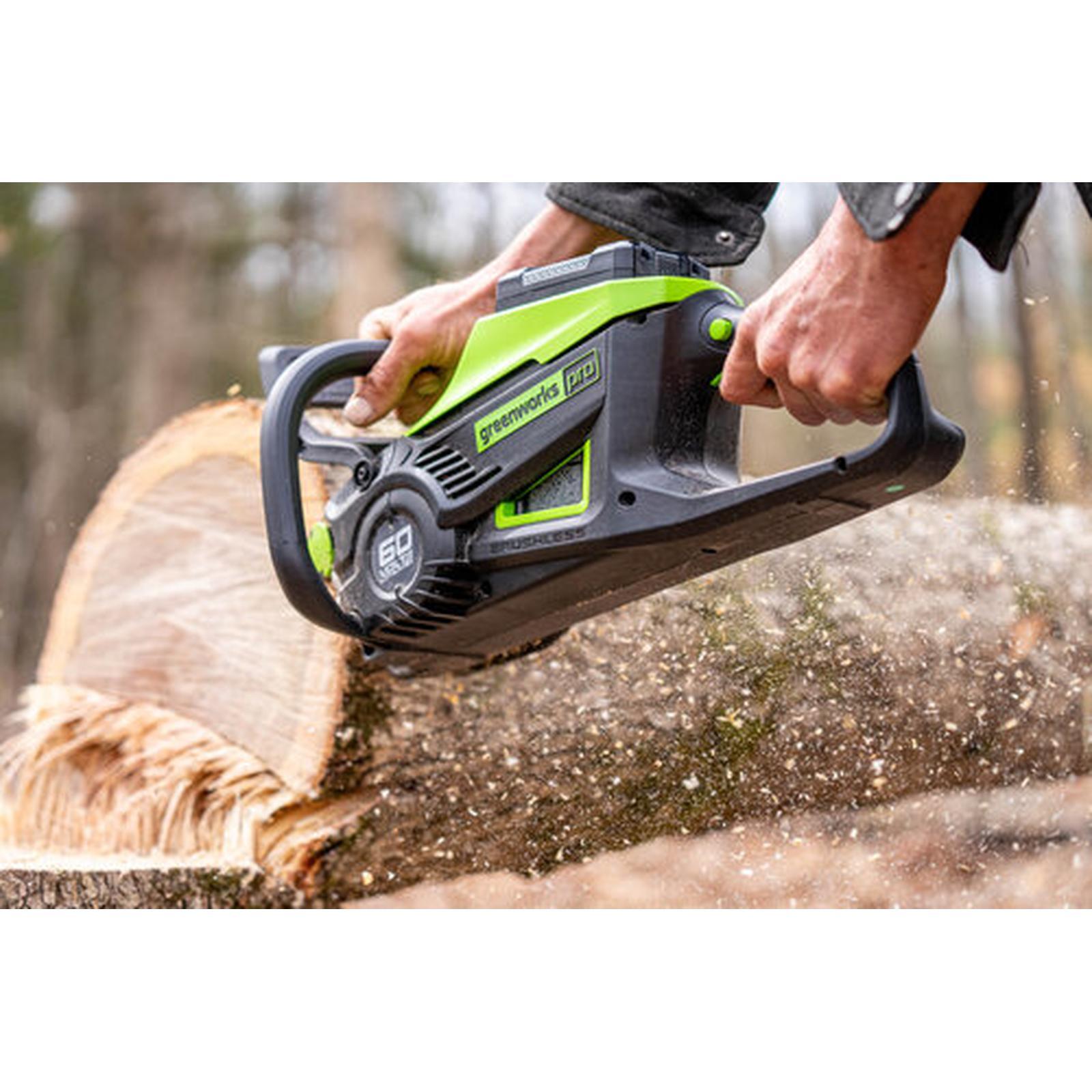 Unleash serious cutting power without the fuss of petrol with the Greenworks 60V 40cm Pro Brushless Chainsaw 6.0Ah Kit. Designed for the toughest jobs, this powerhouse delivers superior torque and faster cutting performance than traditional petrol models, all while being significantly quieter and completely free of noxious fumes. Forget frustrating pull-starts; its easy starting system ensures reliable ignition every time. Maintenance is simplified with an automatic chain oiler that intelligently lubricates the 40cm bar and chain, taking the guesswork out of upkeep. Plus, side-mounted tensioning allows for quick, effortless adjustments, ensuring you spend more time working and less time tinkering. Get ready to tackle your projects with unmatched efficiency and ease, exclusively from The Grit.