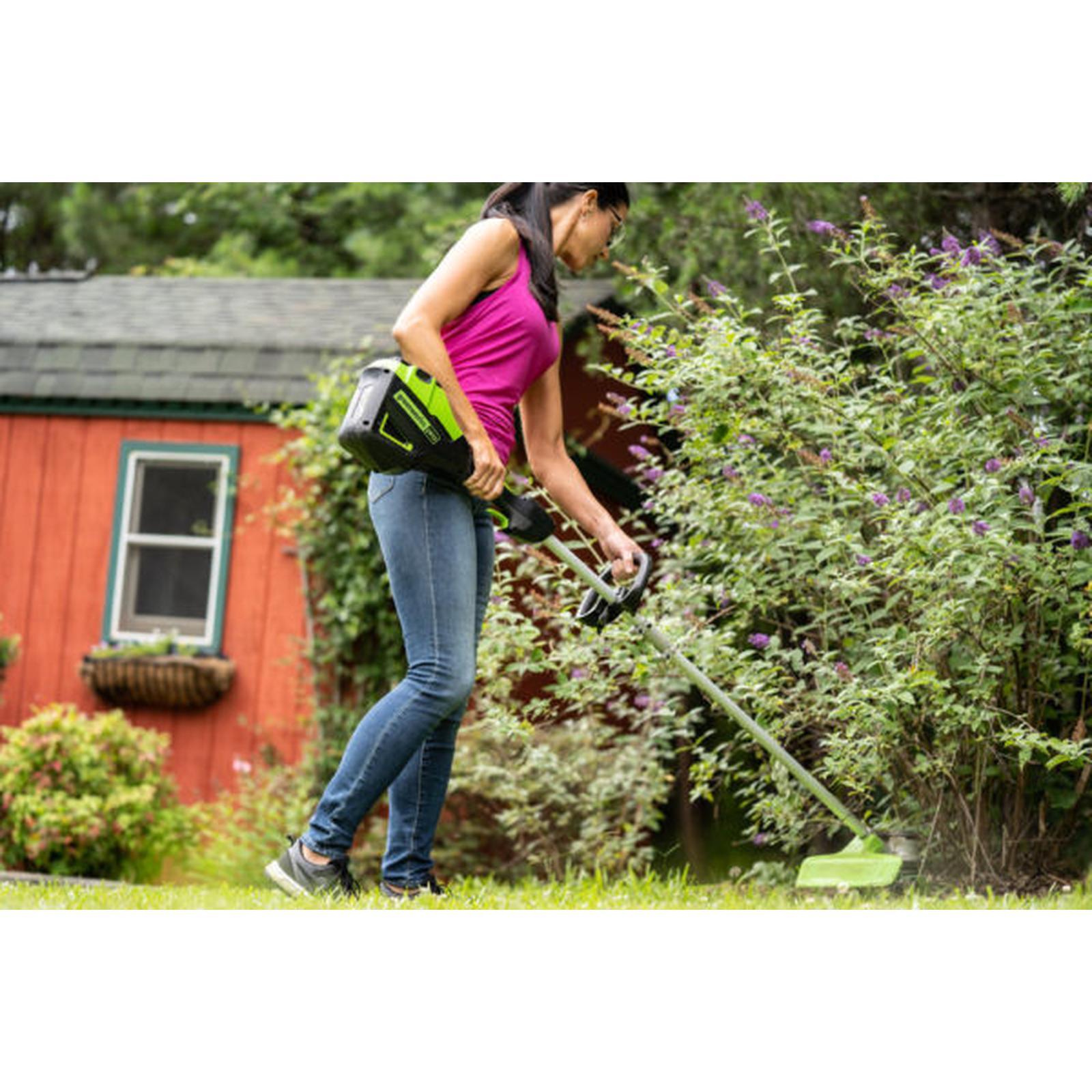 Tackle unruly edges and perfect your garden with the Greenworks 60V 40cm Pro Brushless String Trimmer 6.0Ah Kit (2109007AU-Kit-6), available now at The Grit. This powerful cordless trimmer delivers robust performance without the fuss of petrol, yet remains surprisingly compact and lightweight for comfortable handling. Experience instant starts at the squeeze of a trigger, and tailor your trimming with a responsive variable speed trigger and an easily adjustable handle for optimal comfort. The innovative Load N’ Go trimmer head is a game-changer, allowing you to reload line in mere seconds without any disassembly. Spend less time on maintenance and more time enjoying a pristine yard with this high-performance tool.