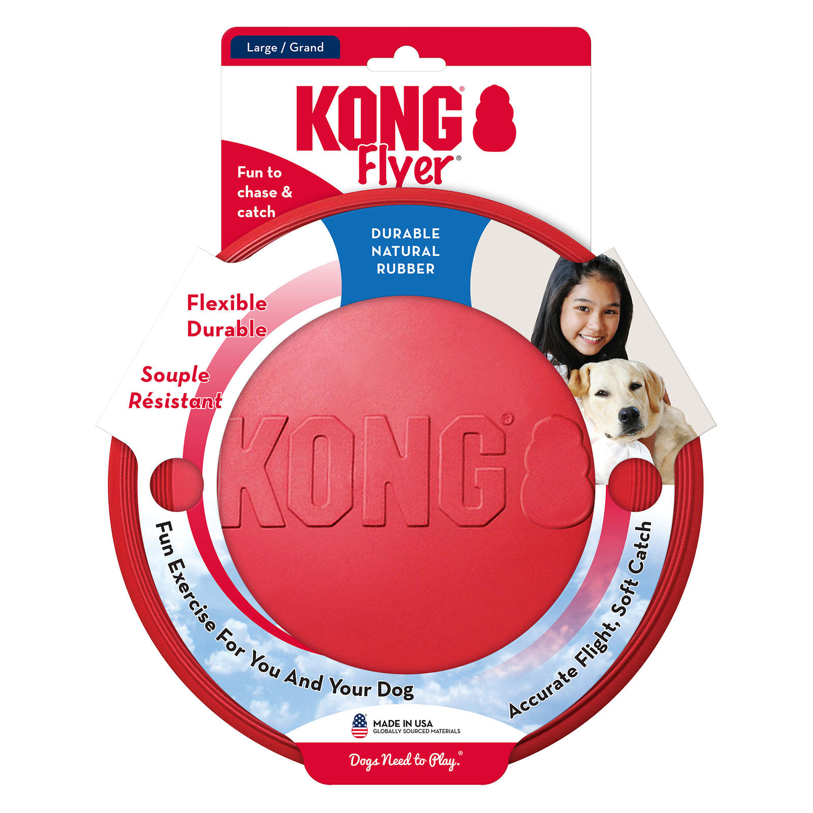 Reinvent your dog's favourite pastime with the Kong Flyer, meticulously engineered for superior performance and safety during every game of fetch. Say goodbye to brittle, hard plastic discs that can easily crack and cause injury to your dog’s mouth and gums. This large flyer is expertly crafted from Kong's world-renowned Classic natural rubber formula, delivering an exceptional combination of rugged durability and surprising flexibility. This innovative material is specifically designed to be gentle on your companion's teeth, providing a soft, comfortable, and forgiving catch that encourages confident play. The flyer’s precision aerodynamic profile ensures a true, stable flight, allowing for long, accurate throws that will challenge and delight your energetic canine. Watch as they expertly track its path through the air. And for those moments when the catch is just missed, the dynamic rebound of the natural rubber sends the disc bouncing and tumbling, re-igniting the chase and keeping your dog thoroughly engaged. More than just a simple toy, the Kong Flyer is an indispensable tool for providing essential physical exercise and mental stimulation, helping to curb boredom and destructive behaviours. It's the perfect way to strengthen the unique bond you share, creating lasting memories through healthy, active, and safe play. Choose the trusted quality of Kong and give your best mate the premium fetching experience they deserve.