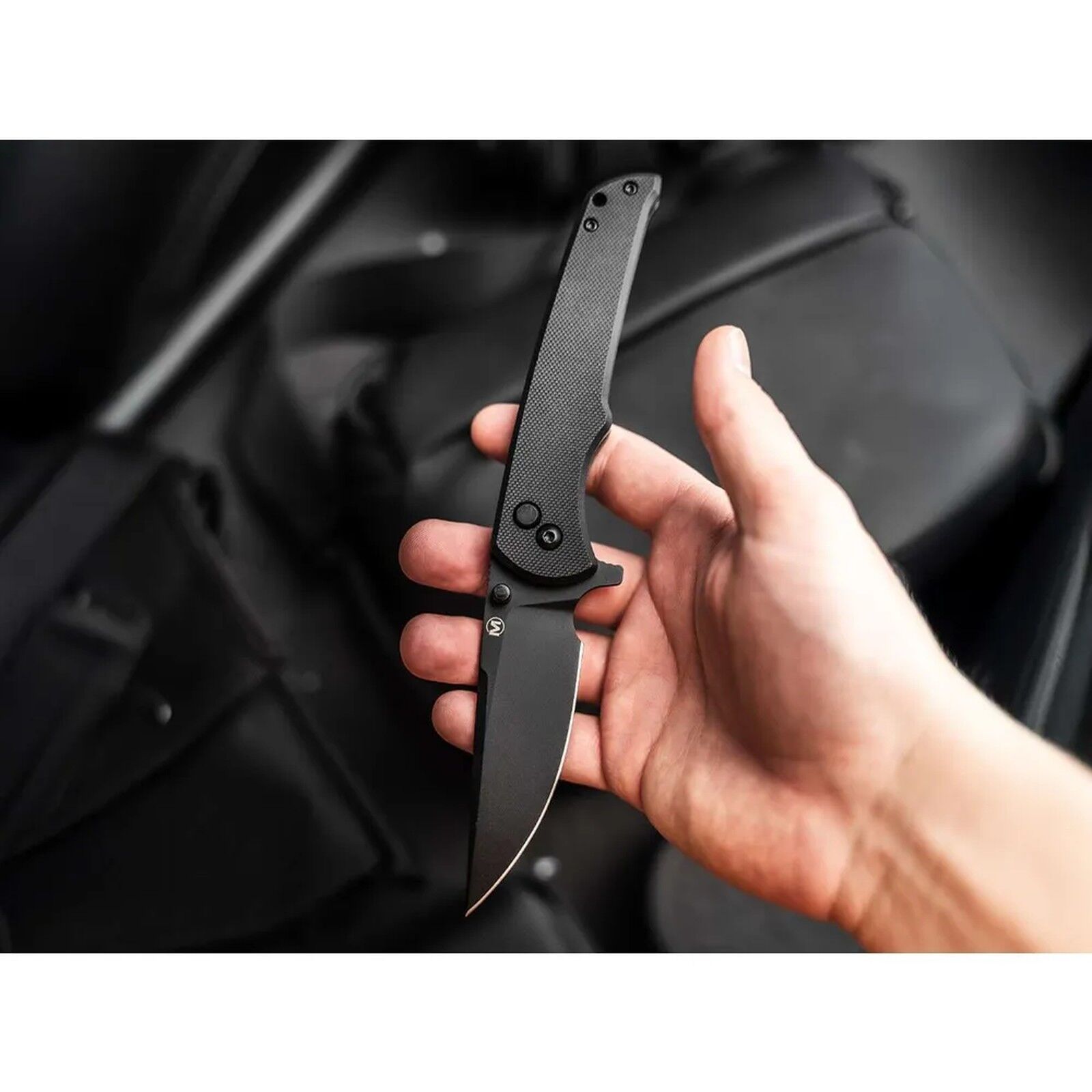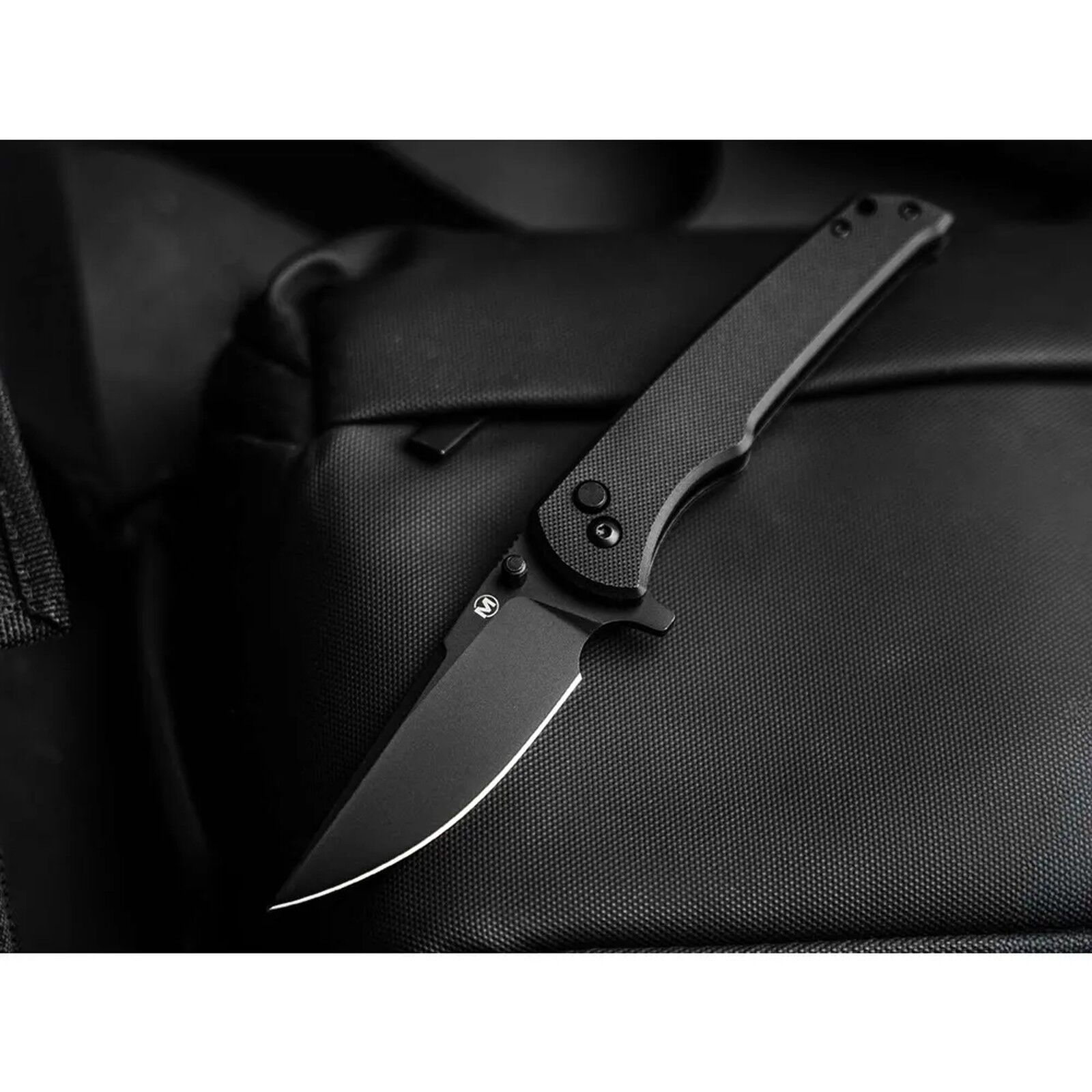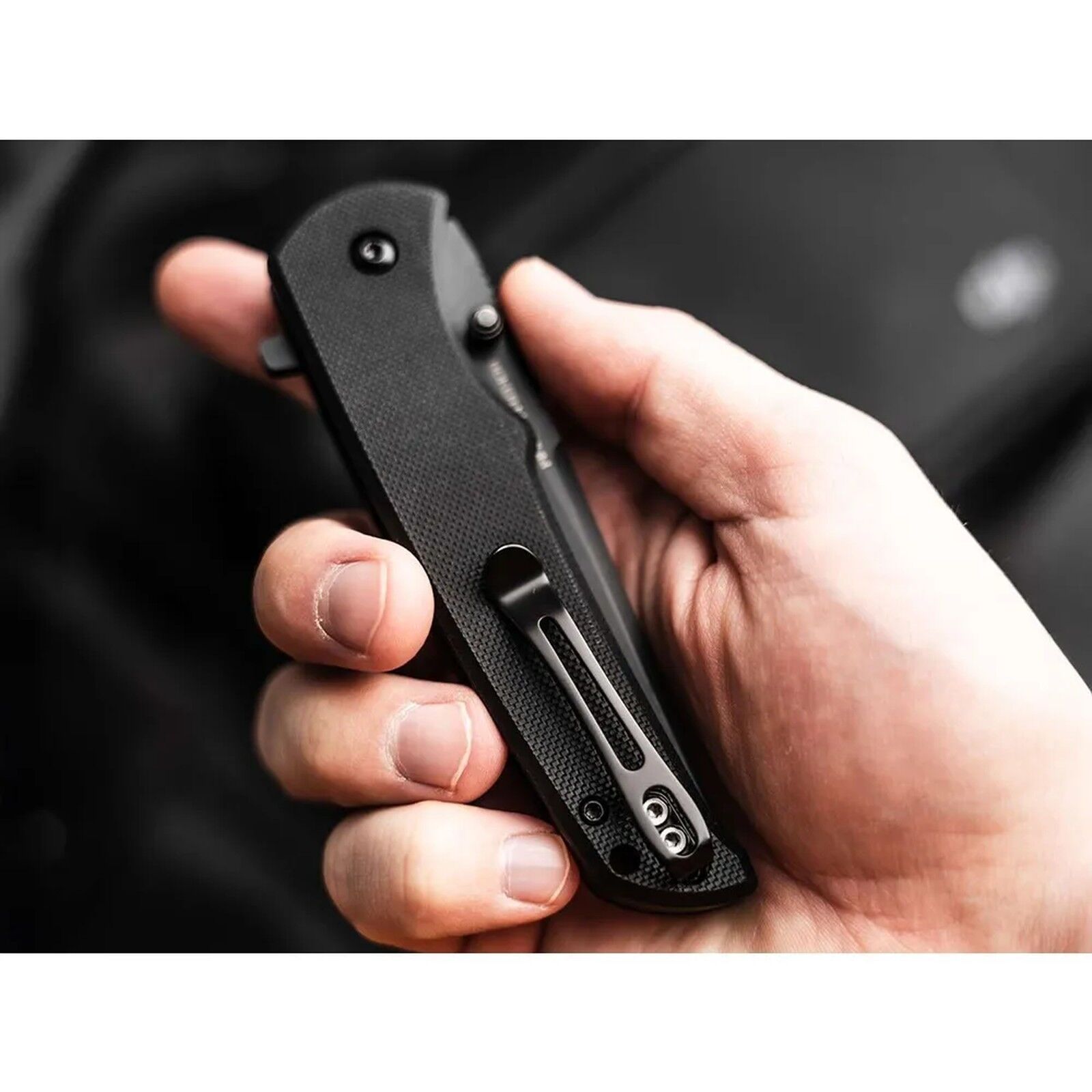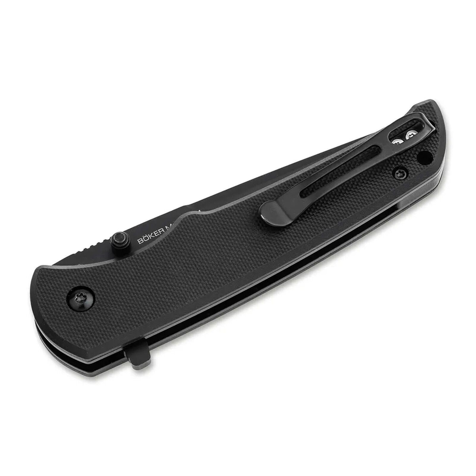 For those who demand unwavering performance and a striking design in their everyday carry, the Magnum by Boker Blackjay Button Lock Folding Knife in Black stands ready. This robust pocket knife seamlessly blends tactical readiness with a design inspired by the formidable Black Currawong. Its black-coated 440A steel blade, featuring a distinctive ricasso, not only offers exceptional durability but also evokes the powerful beak of its namesake, perfectly adapting to any challenge. Opening is intuitive and secure, thanks to a pronounced flipper, a protective finger recess, and jimpings on the blade's spine that ensure a firm grip and contribute significantly to safe operation. For ambidextrous users, a convenient thumb stud allows for swift, smooth deployment. The ergonomically balanced G10 handle, mirroring the Blackjay's dark plumage, provides superior comfort and a non-slip grip in all conditions. Integrated seamlessly, the solid button lock mechanism offers steadfast blade security, its design subtly echoing the bird's sharp, button-like eyes. Completing its tactical black aesthetic, a practical tip-up pocket clip ensures the Blackjay is always within reach, ready for action. Whether for outdoor adventures or daily tasks, this knife is a dependable companion built for those who appreciate precision engineering and a touch of untamed elegance.