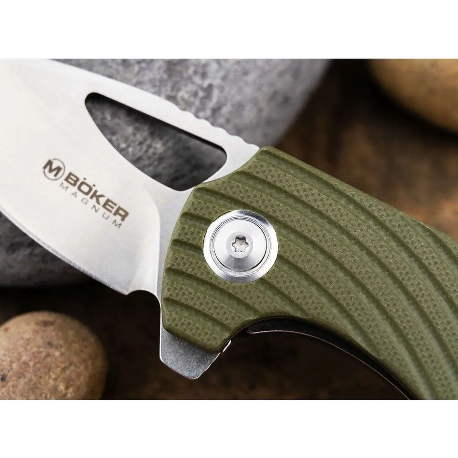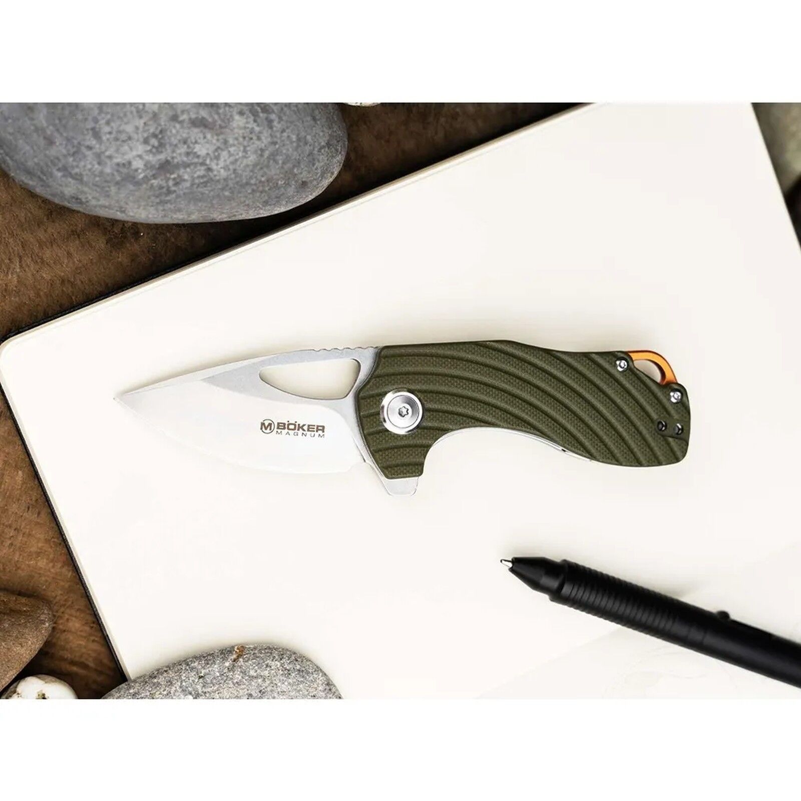 Unleash the potential of your everyday carry with the Magnum by Boker Tadpole Liner Lock Folding Knife, a tool that embodies versatility and robust design. Much like its namesake's journey to full form, this knife has evolved into a dynamic and highly capable companion, ready to tackle any cutting task thrown its way. At its core is a powerful 440C spear point blade, meticulously crafted with a ricasso, jimpings, and a discreet stonewash finish, ensuring it's always poised for action, whether at home or in the field. Experience incredibly smooth deployment thanks to its ball-bearing action, offering you the choice of a swift flick of the flipper or the deliberate engagement of the large thumb hole. Once open, the reliable liner lock mechanism secures the blade firmly, providing peace of mind during use. The striking frog green G10 handle scales, featuring a breathtaking non-slip wave texture, not only provide superior grip but also hint at its unique aquatic inspiration. Complementing this vibrant handle is an orange coloured backspacer with an integrated lanyard hole, adding a successful pop of contrast and practical utility. Complete with a reversible deep-carry clip for tip-up carry, the Tadpole is a testament to thoughtful design and dependable performance, making it an indispensable addition to your gear from The Grit.