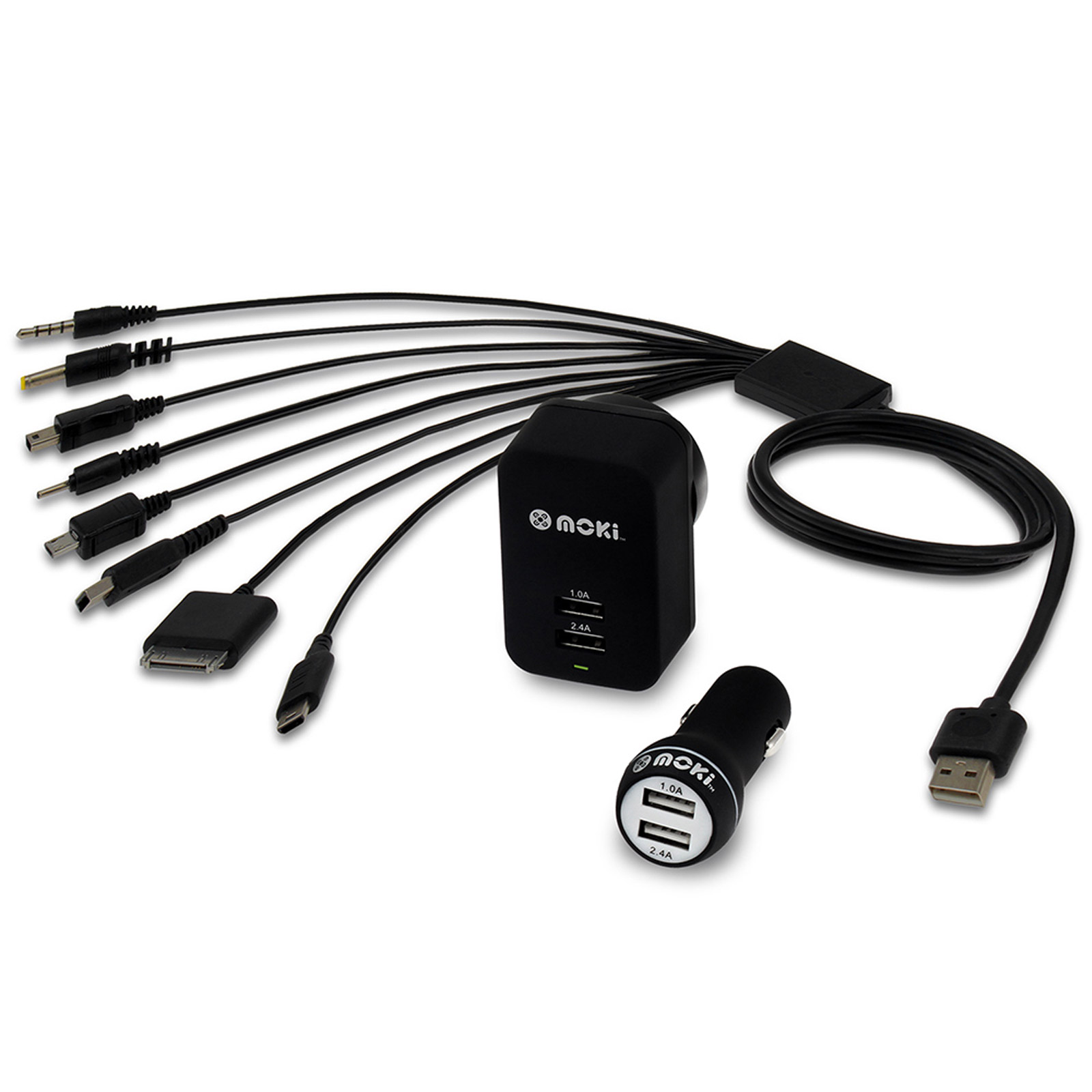 Simply plug charger into appropriate socket and insert original USB connection cable, or use the supplied multi-charge cable, to quickly and safely recharge your portable devices. When power is connected LED indicator on charger will glow green. Car charger may require that ignition be turned on before charging is possible. Recharge portable USB devices anytime, anywhere. No computer required! The USB wall charger and USB car charger both have dual outputs to allow recharge of multiple devices at once.