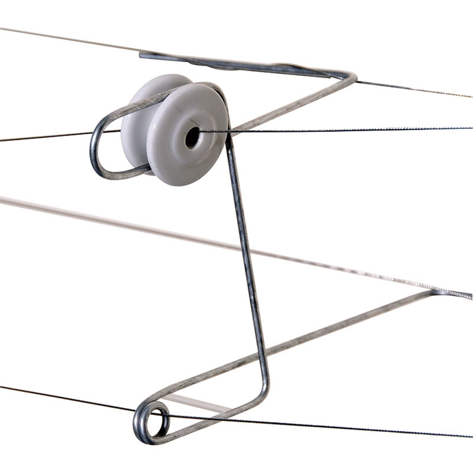 Double Fencing Offset Brackets are used when the earthing conditions are poor, this allows the bracket to carry both a live wire and an earth wire to where it is needed. By utilising the strength and rigidity of an existing fence it will reduce the costs of the electric fence system. Offsets are generally used for animal control and are available in 4mm galvanised high tensile steel. These offset brackets can be used with a porcelain or plastic insulator.