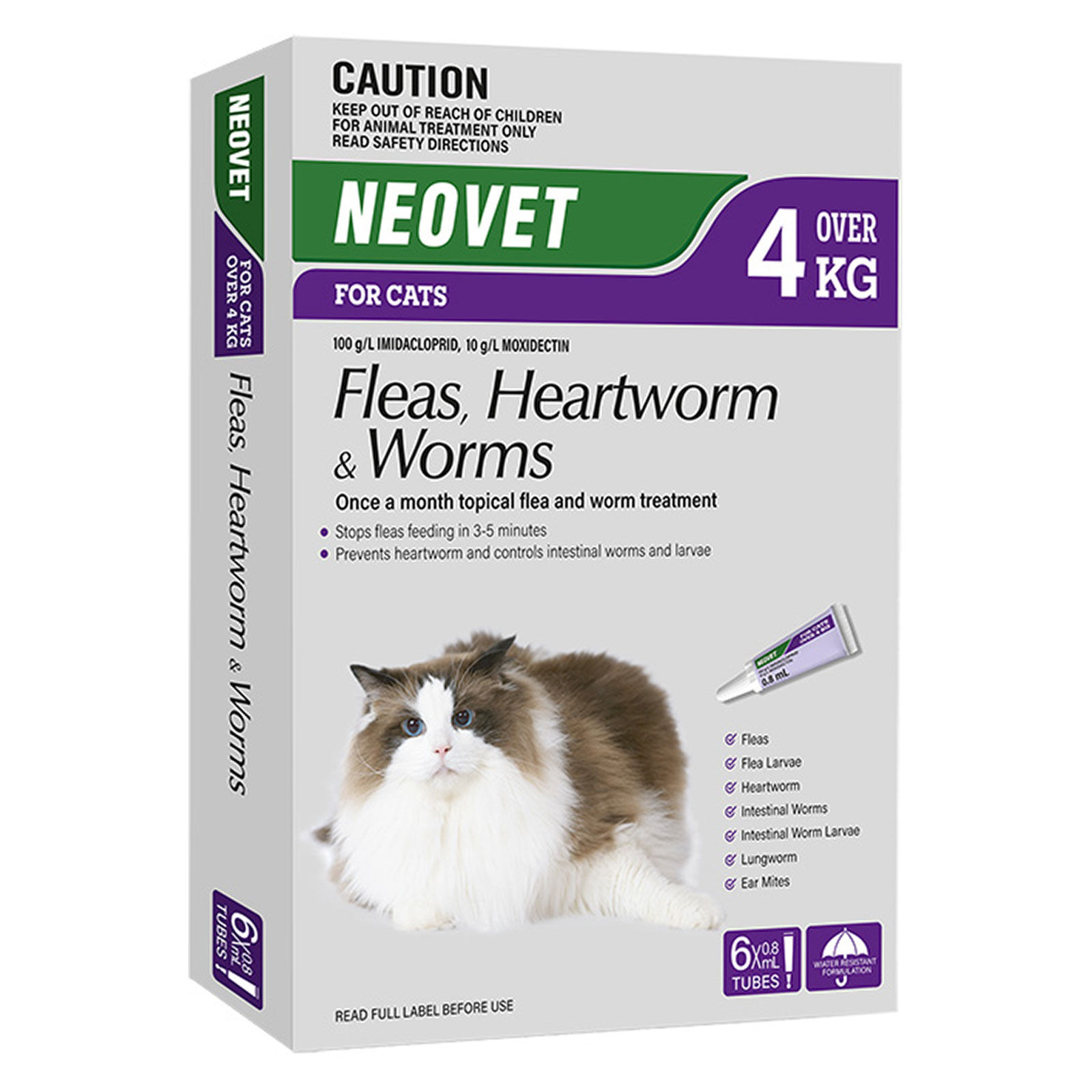 Keep your feline friend happy and healthy with Neovet 6 Pack Fleas, Heartworm & Worms for Cats, suitable for cats weighing over 4 kilograms. This comprehensive all-in-one treatment provides powerful protection against a wide range of parasites, offering peace of mind for you and comfort for your cat. Neovet effectively tackles both internal and external threats, eliminating troublesome worms like roundworms and hookworms – including those potentially found in warmer, tropical regions of Australia – as well as pesky ear mites and lungworm. Beyond internal parasites, this treatment also provides reliable flea control, helping to reduce the irritating symptoms of flea allergy dermatitis. Importantly, Neovet doesn’t just kill adult fleas on your cat; it also targets developing flea larvae in their surroundings, helping to break the flea life cycle. Regular monthly use is also crucial for preventing potentially fatal heartworm infection, protecting your cat from this serious condition. With consistent monthly application, Neovet provides continuous worm control, ensuring your cat remains protected and thriving. This convenient 6-pack ensures you have a six-month supply to keep your furry companion safeguarded.