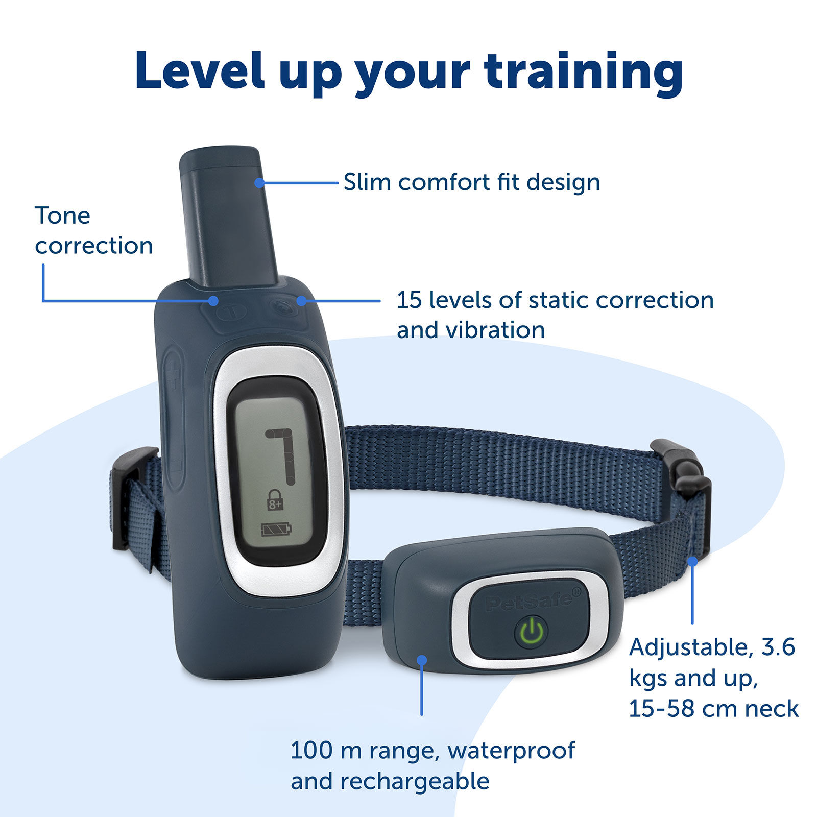 - 91.4-metre range – Safely train your dog inside your home, in the back garden or at the park
