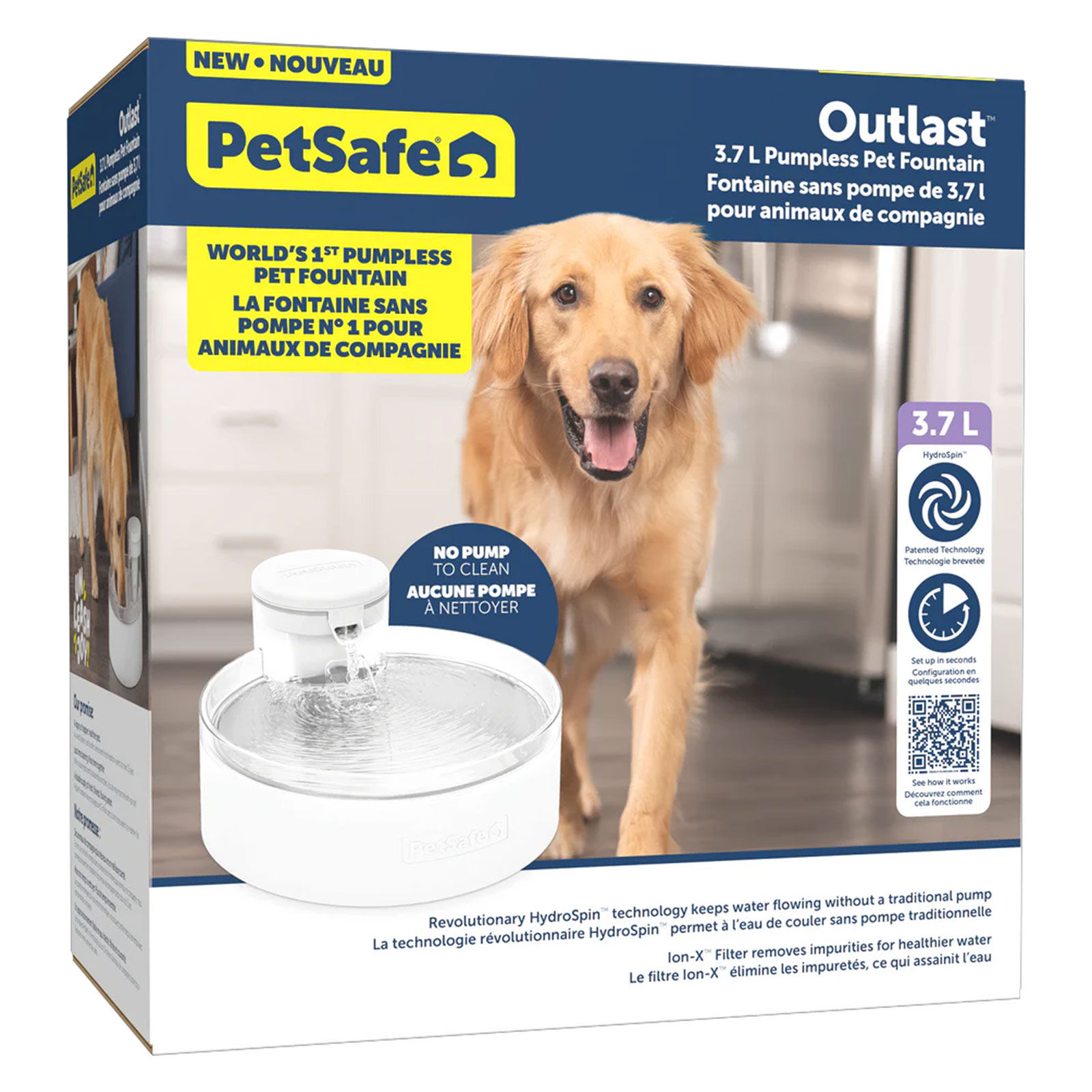 - Features HydroSpin™ technology with a patented cone mechanism, cycling 3.7 L of water into your open-bowl design, perfect for dogs and multi-pet families