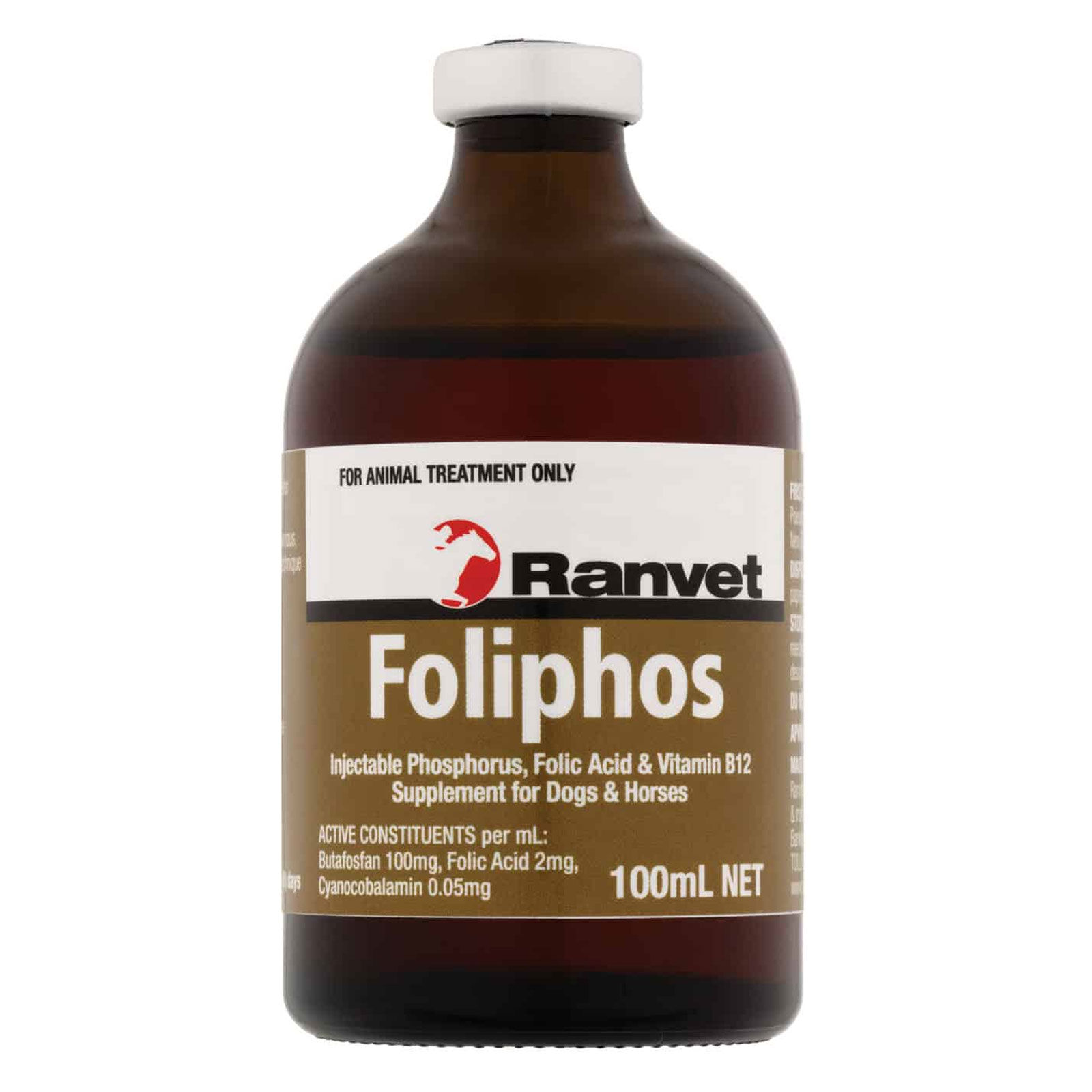 Unlock the peak potential of your performance horses and dogs with the Ranvet 100mL Foliphos Injectable Supplement. This scientifically formulated solution is expertly designed to support the demanding metabolic needs of hardworking animals, promoting enhanced performance and endurance. At its core, Foliphos delivers a powerful combination of organic phosphorus, folic acid, and a long-acting form of Vitamin B12. These key nutrients work synergistically to optimise red blood cell production in the bone marrow, which is fundamental for increasing the blood's oxygen-carrying capacity. The direct result is a noticeable improvement in stamina and a reduction in fatigue during strenuous activity. The supplement features a highly bioavailable form of phosphorus, butafosfan, which is readily incorporated into high-energy phosphate complexes like ATP, directly fuelling muscle function and recovery. Beyond its role in energy metabolism, this potent formula provides a crucial Vitamin B12 boost to maintain healthy levels in the blood and liver, while also stimulating and maintaining a robust appetite. It is also particularly beneficial for animals on high-grain diets, as it aids in the digestion of starch. As a trusted component in any serious conditioning program, this APVMA-approved supplement (Approval No. 52631) provides the essential building blocks for superior athletic output and overall wellbeing.