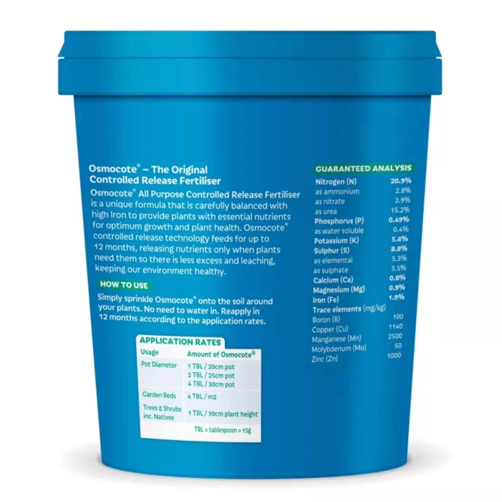 For those who crave a flourishing garden without the constant fuss, the Scotts 1kg Osmocote All Purpose 12 Month Controlled Release Fertiliser from The Grit is your ultimate solution. This clever, set-and-forget plant food delivers a full year of continuous nourishment with just one application, allowing you to enjoy vibrant, healthy plants with minimal effort. Utilising advanced prill technology, this fertiliser ensures an even and consistent release of vital nutrients precisely when your plants need them most. Its intelligent design responds to temperature, providing more feed during warmer, active growth periods and less when it's cooler and growth slows down, ensuring no wastage and optimal absorption. More than just a slow-release feed, Osmocote also incorporates a wetting agent to significantly improve water absorption into your soil or potting mix, making sure nutrients are readily available for your plants to take up. Boosted with iron, magnesium, and other essential trace elements, it promotes lush, greener leaves that last longer and supports robust, healthy growth across the board. With less than 2% phosphorus, it's a fantastic choice for a wide variety of plants, including most Australian natives and other phosphorus-sensitive species. From trees and shrubs to flowering annuals, perennials, vegetables, herbs, fruits, and even your indoor potted plants, this versatile formula is safe for new plantings too, gently nurturing young roots without the risk of burning. Embrace an economical and environmentally friendly approach to gardening with Scotts Osmocote All Purpose 12 Month Controlled Release Fertiliser for vibrant, flourishing plants all year round, effortlessly.