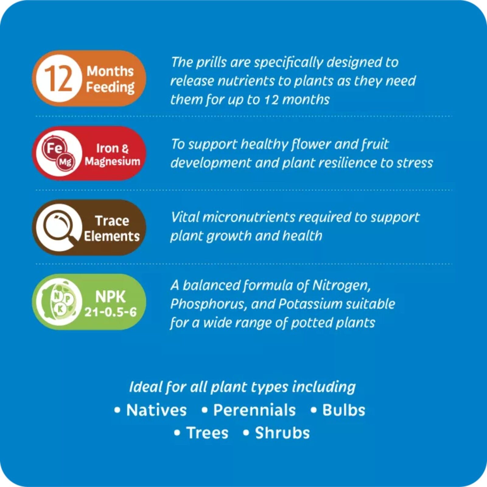 - Safe to use on new plants - the controlled release of nutrients means it will not burn soft leaves or tender young roots