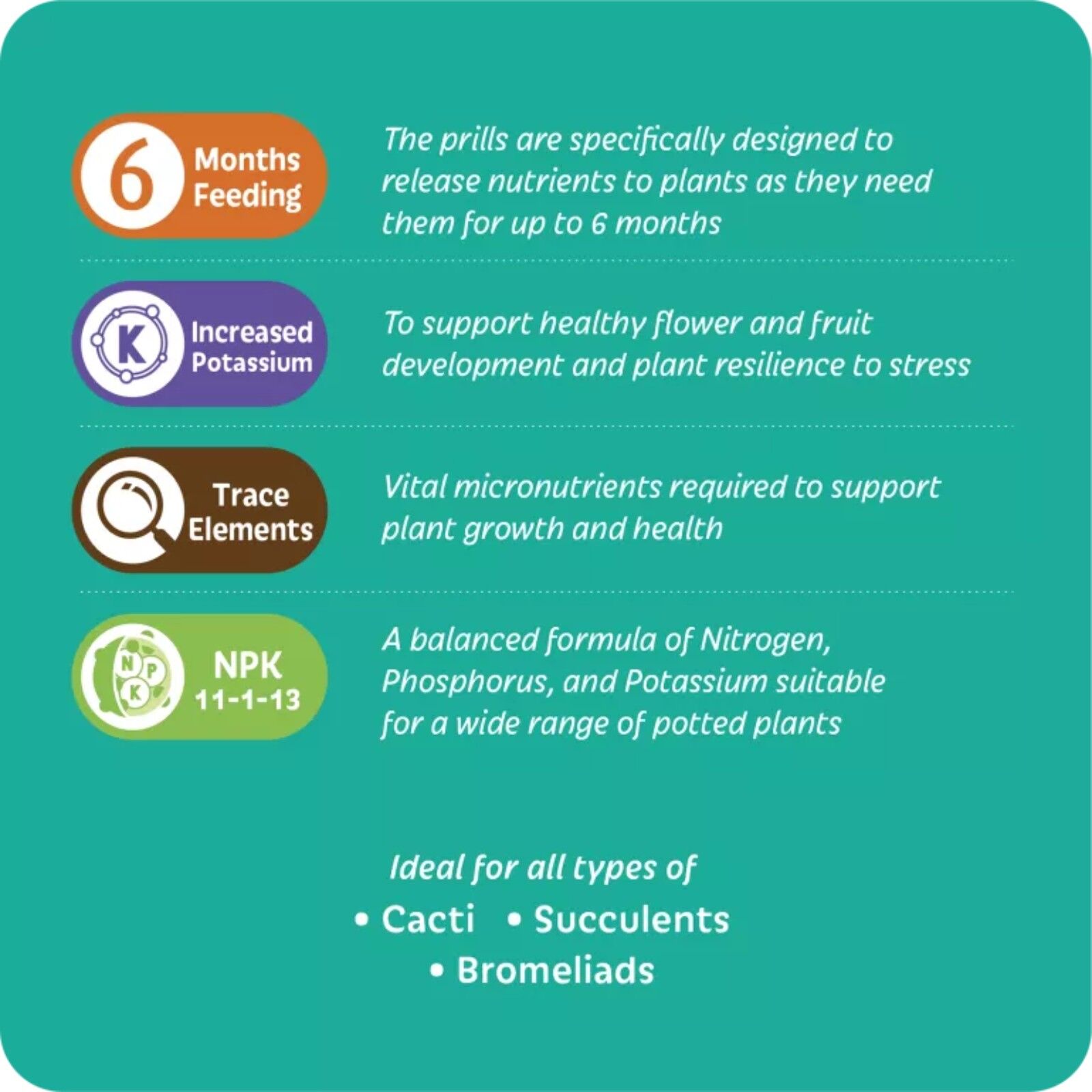 • Ideal for all types of Cacti, Succulents & Bromeliads