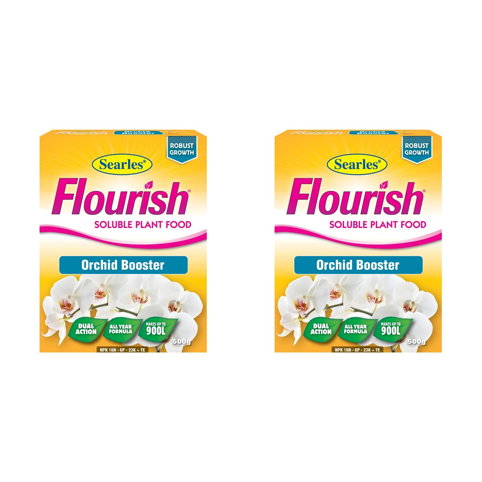 Transform your orchid collection into a breathtaking display with Searles 500g Flourish Orchid Booster Soluble Plant Food, the secret to vibrant growth and spectacular blooms. This premium quality, specially formulated plant food is designed to provide your beloved orchids with everything they need for robust development and an abundance of brilliant, long-lasting flowers. Its balanced NPK ratio of 16N - 6P - 23K, perfectly complemented by a comprehensive range of essential trace elements, fuels vigorous growth from root to tip. What sets this booster apart is its completely soluble formulation, ensuring nutrients are absorbed rapidly and efficiently by your plants. Featuring chelated iron, copper, zinc, and manganese, these vital micronutrients are not only fast-acting but are readily taken up through both leaves and roots, delivering brilliant quick results you can see. Plus, it’s completely free from chlorides, ensuring a gentle yet powerful feed. Applying this powerful orchid food couldn't be simpler; whether you prefer using a watering can, a hose applicator, or a fertiliser injector, your orchids will quickly benefit. For the fastest impact, simply apply the solution to the foliage as part of your regular watering routine. Designed as a single, versatile formulation, it’s suitable for all orchid varieties, including popular choices like cattleya, dendrobium, vanda, phalaenopsis, oncidium, paphiopedilum, cymbidium, and even native orchids, allowing for year-round application. Give your orchids the nourishment they deserve and watch them flourish like never before. With Searles Flourish Orchid Booster, you’re not just feeding your plants; you’re cultivating a masterpiece.