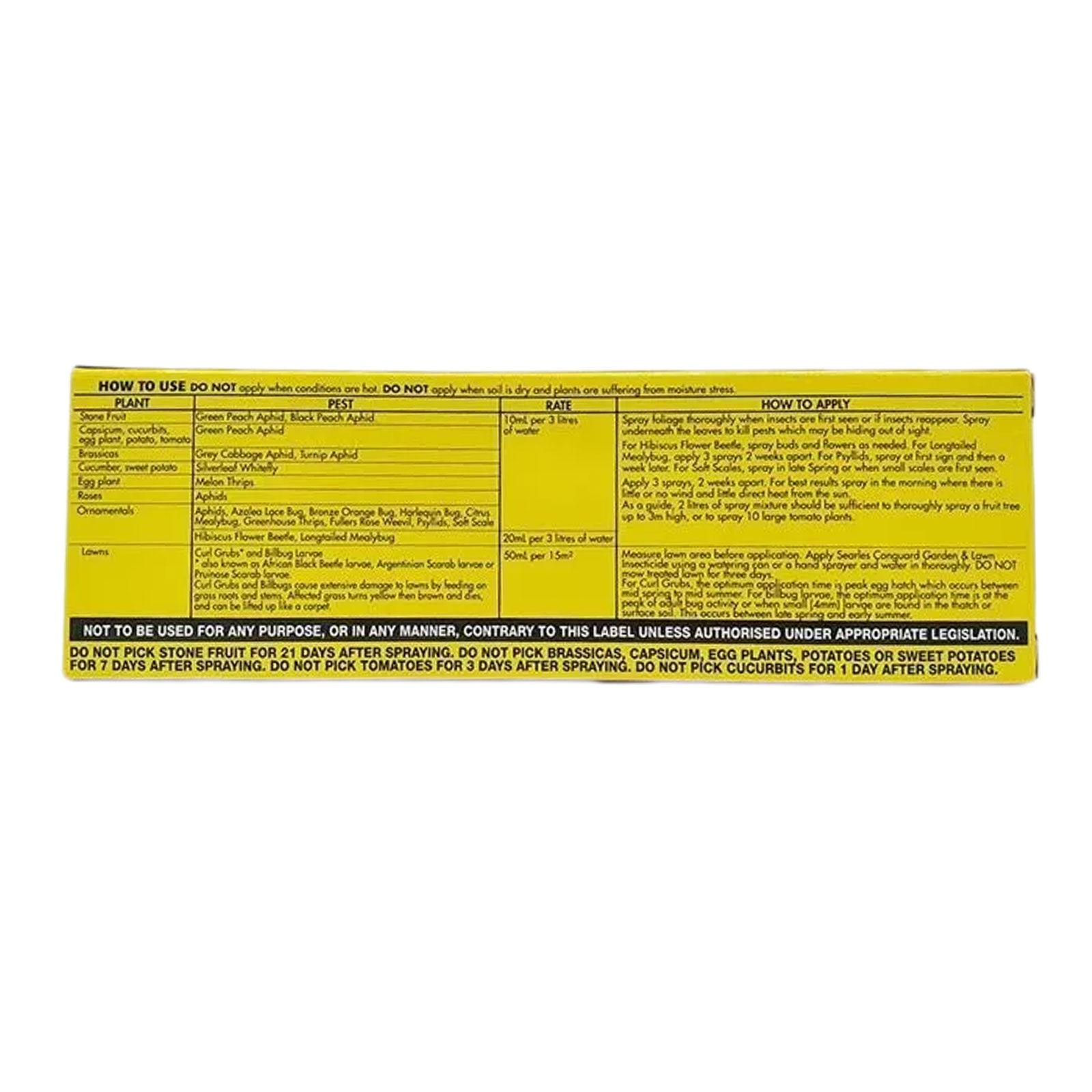 Unleash the power of effective pest control in your garden and lawn with Searles 500mL Conguard Garden & Lawn Insecticide, available now at The Grit. This robust solution is your essential partner in maintaining a healthy, thriving outdoor space, tackling a broad spectrum of common garden invaders. Conguard works tirelessly in two ways: it acts as a fast-acting contact spray, delivering an immediate knock-down to visible pests, and then moves systemically through your plants via their sap, providing a sustained defence from within. This dual-action ensures comprehensive protection, offering up to four weeks of residual control against a host of nuisances including aphids, azalea lace bug, mealybugs, psyllids, hibiscus flower beetle, various scales, and greenhouse thrips. Even the dreaded bronze orange bug and those troublesome curl grubs in your lawn don't stand a chance. Perfect for fortifying everything from your prized roses, shrubs, and ornamental plants to your essential stone fruit and vegetable patches, Conguard ensures your entire garden thrives with renewed vigour. Its low toxicity formula is both fast and highly effective, giving you peace of mind and a noticeably healthier garden.