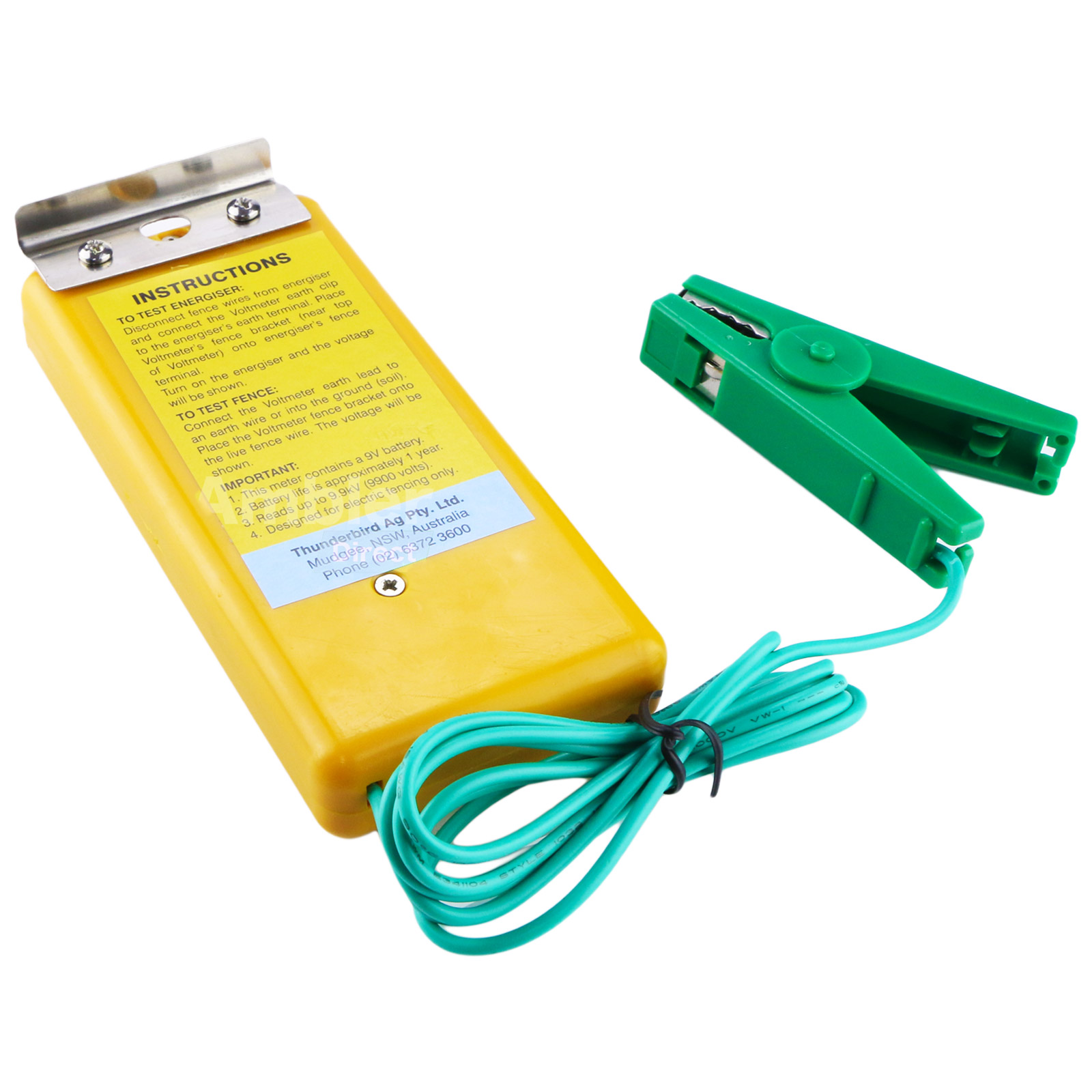 Ensure your electric fence is performing at its peak with the Thunderbird EF-8 Digital Voltmeter, an essential diagnostic tool available at The Grit. This reliable Australian-designed tester allows you to quickly and accurately measure the voltage on your fence line and directly at your energiser. It features a large, clear LCD that provides an immediate reading of up to 10,000 volts, so you know instantly if your fence is operating effectively. Using the device is straightforward; simply use the clips for the energiser terminals or the convenient steel hang bracket for checking the voltage on any live wire. Built for life in the paddock, this voltmeter is a dependable instrument for any farmer, animal hobbyist, or homeowner. It is powered by a standard nine-volt battery and features a smart auto-off function to deliver an exceptionally long battery life of up to 18 months, ensuring it is always ready when you need it for routine checks or troubleshooting faults.