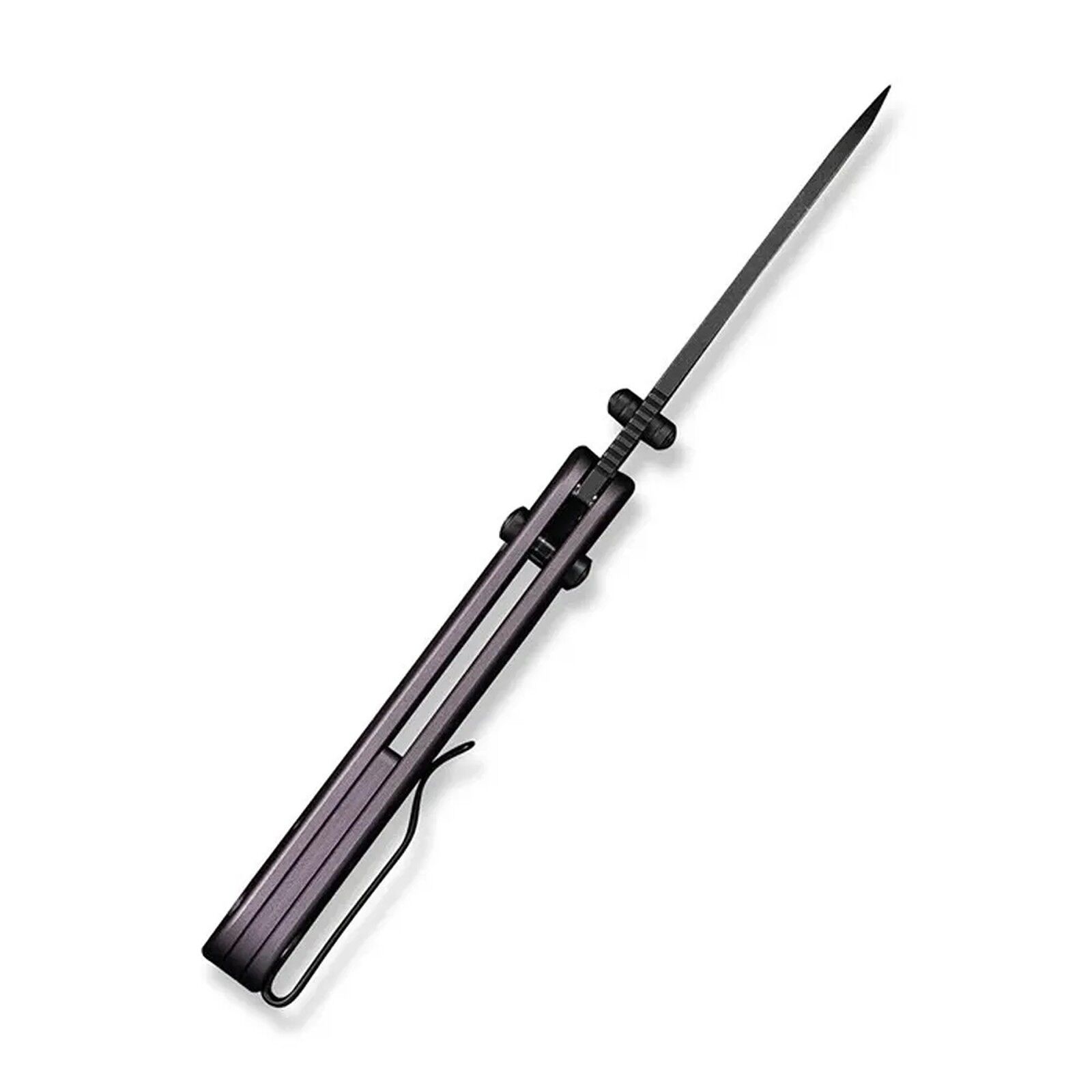 The WE Knife Banter 2 WE23075-2 is a cracker of a pocket knife that is ready for work, and you can find it right here at The Grit. It comes with a 78mm drop point blade made from premium CPM S35VN stainless steel, featuring a tough black stonewashed finish that is great at hiding everyday wear and tear. This model uses a solid crossbar lock, making it super easy and safe to flick open or closed with one hand without your fingers getting in the way. The handle is crafted from durable titanium in a striking purple colour, shaped to sit comfortably in your palm for a secure grip during any job. At 181.6mm long when fully open and weighing in at 103.5g, it is a sturdy tool that will not feel like a brick in your pocket throughout the day. The action is incredibly smooth thanks to the caged ceramic ball bearings and the dual thumb studs. Finished with a deep-carry pocket clip, this Ben Petersen design is a practical and reliable folder that looks sharp and performs even better for your daily carry needs.