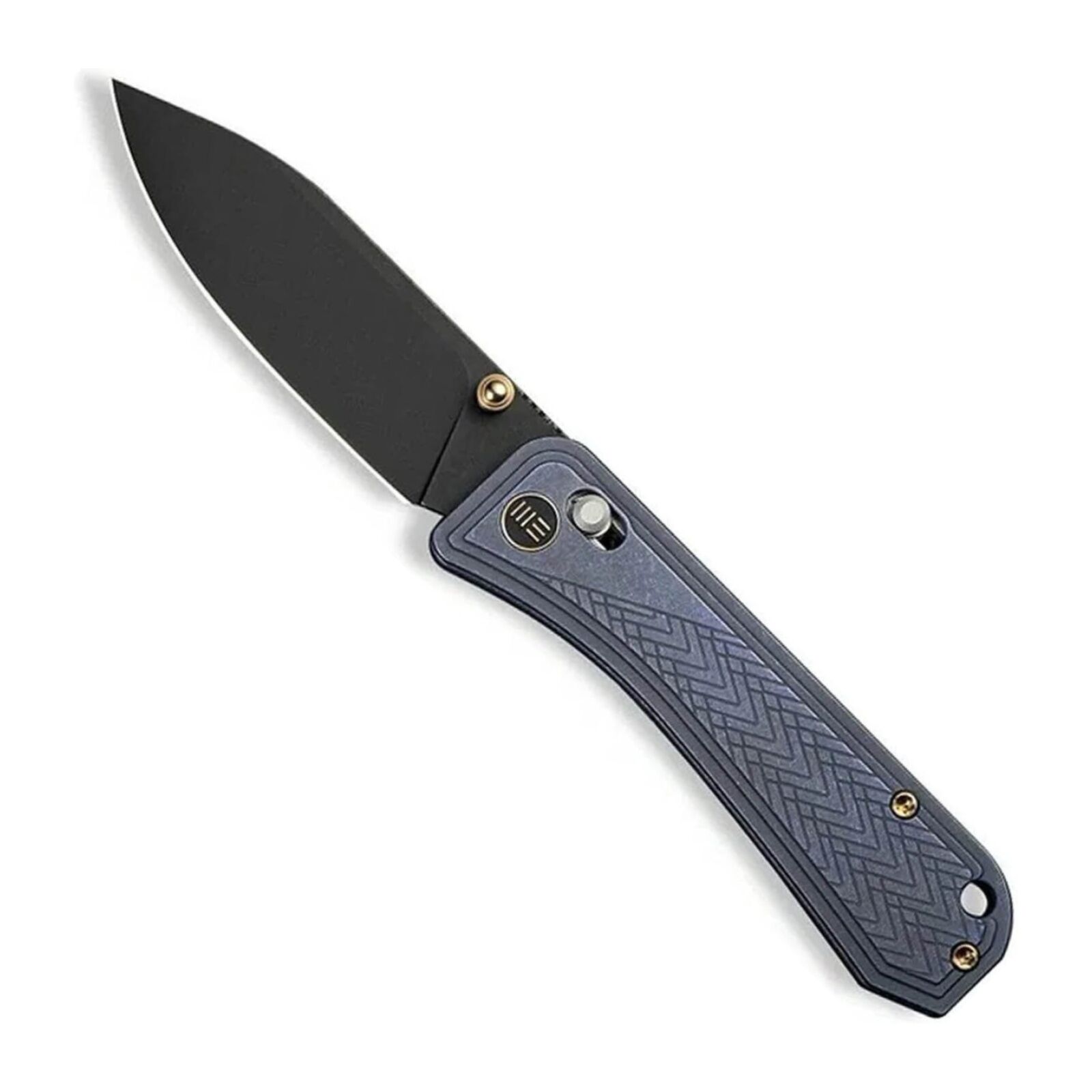 The WE Knife Bougie Banter WE24009-1 is a premium version of a classic design that you can pick up at The Grit, featuring a durable blue titanium handle and a 73.7mm black stonewashed blade made from high-quality CPM S35VN stainless steel for excellent edge retention. This folder stands out with its smooth crossbar lock that allows for easy one-handed operation for both left and right-handed users, while the caged ceramic ball bearings and titanium thumb studs ensure the action is always fast and reliable. Measuring 178.3mm when fully open and weighing only 89.6g, it is perfectly sized to fit in your pocket without feeling bulky, making it a dependable choice for your daily toolkit. Complete with a reversible deep-carry pocket clip, this Ben Petersen design is a practical, no-nonsense tool that is built to handle your everyday cutting tasks with ease and style.