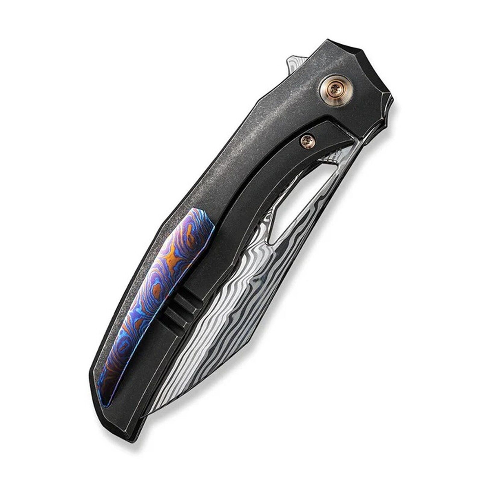 The WE Knife Ignio WE22042B-DS1 is a real stunner that brings a touch of class to your everyday carry, and it is available now at The Grit. This version stands out with its 83.9mm Damascus steel blade, showing off those intricate patterns that look as good as they cut. The blade features a clever wharnto shape, which is a hybrid design that makes it fantastic for both detailed tasks and regular slicing. It is paired with a sleek, black titanium handle that has been contoured to fit your hand perfectly, ensuring a solid and comfortable grip. With a total length of 195.7mm and a weight of just 102.3g, it is a lightweight companion that stays out of the way until you need it. The blade deployment is fast and buttery smooth because of the caged ceramic ball bearings, working easily with either the flipper tab or the thumb hole. A reliable titanium frame lock keeps everything secure during use, while the titanium pocket clip makes sure it stays put in your pocket. This folder is a top choice for anyone wanting a high-quality tool that looks the business.